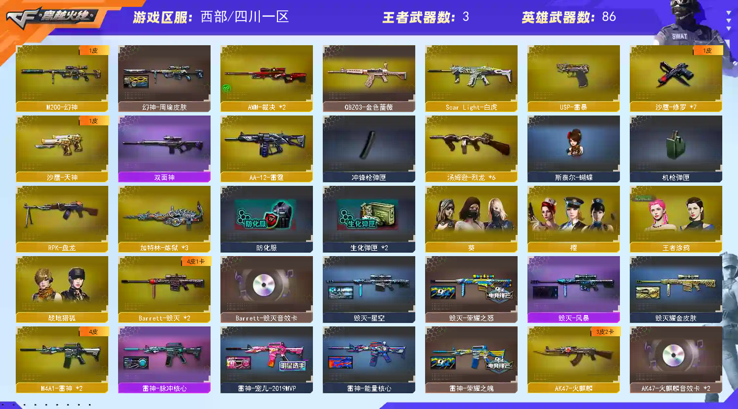 首页 > 租号大厅 > 穿越火线 > 电信区/四川一区 > 可打字|王者涂鸦|职业选手❤幻神周瑜皮+雷神宠儿❤六烈斯泰尔蝴蝶❤雷暴USP|白虎QBZ蔷薇牛牛AK