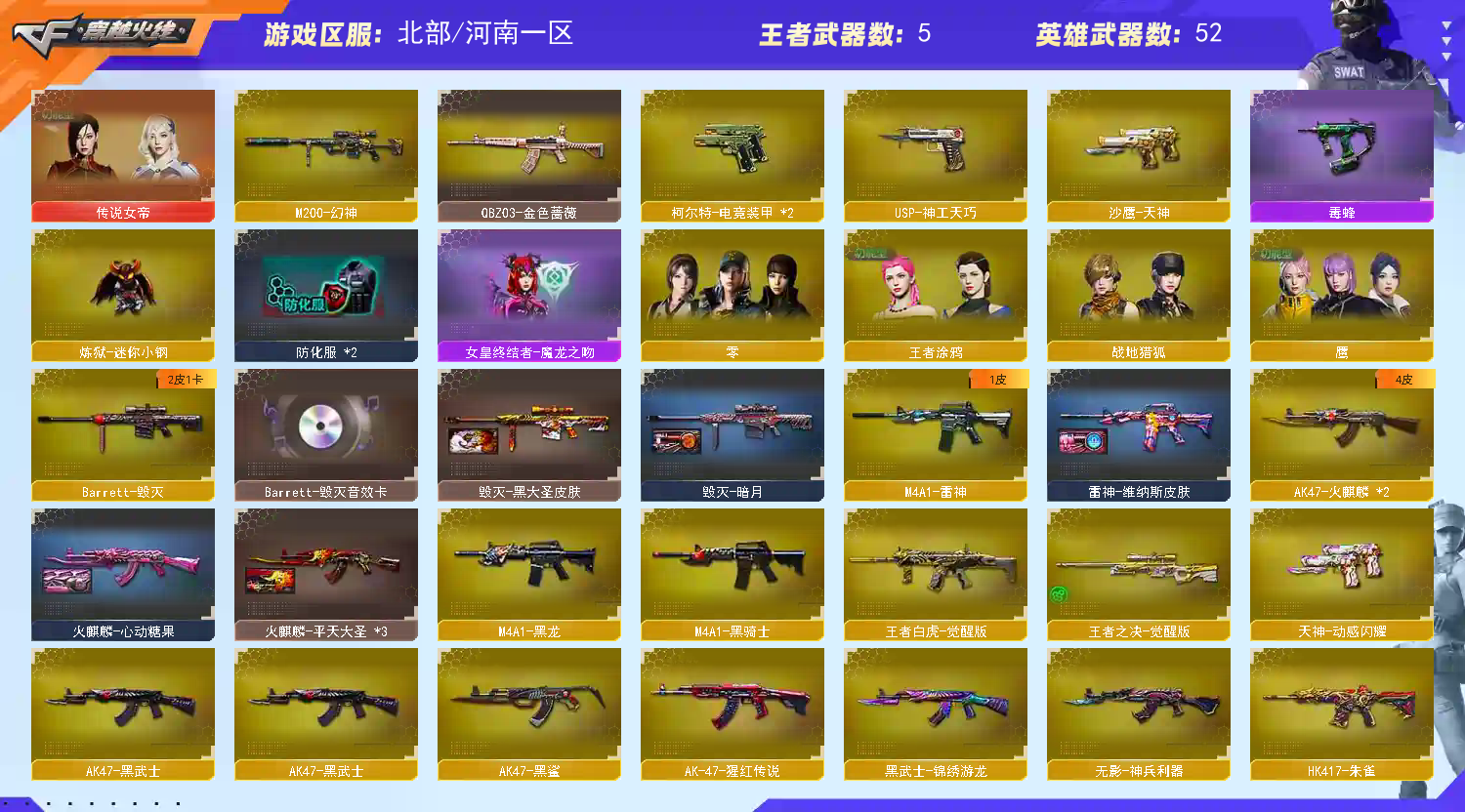 首页 > 租号大厅 > 穿越火线 > 网通区/河南一区 > 【BB78】幻神白虎传说女帝qbz蔷薇天巧USP丨枪娘格雷毁灭音效鹰王者涂鸦