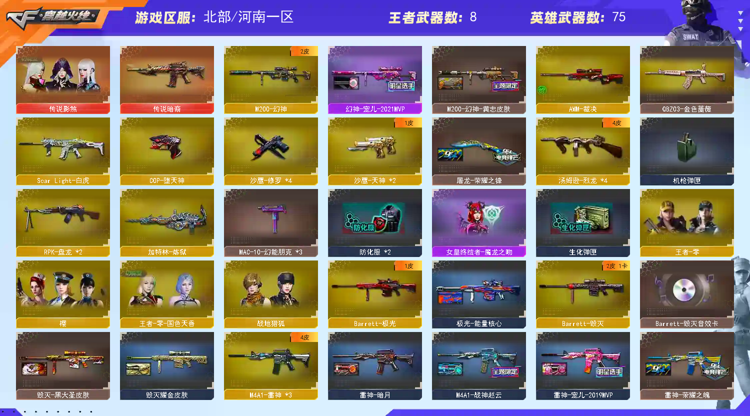 北部号 75V🔥传说影煞/暗裔/幻神+宠儿/黄忠/朱雀/白虎/蝶刃🔥双宠/赵云/马超/刘备/曹操皮四防【河南一区登录】【炫金稀有顶1V介意者勿租】【恶意投诉、撤单不想玩了租错号了等非帐号问题1律拉黑】【此号已备案请勿以身试法】【开挂必究账号价值超高】详细武器请看下方 【重要角色】传说影煞/_樱/王者-零-国色天香/王者-零/乔伊教练/队长肖枫/铁骑荣耀/零-水下丽影/灵狐者-黄金海岸/云海玲珑 【传说武器】传说暗裔 【英雄武器】_M200-幻神/Barrett-毁灭/Barrett-极光/Barrett-暗月传说(2)/AWM-天龙/AWM-裁决/M4A1-雷神(3)/M4A1-黑龙(2)/M4A1-龙血/M4A1-黑骑士(3)/黑骑士-海王(2)/王者之魄-觉醒版/王者之势-觉醒版/王者之戮-觉醒版/HK417-朱雀/_Scar Light-白虎/白虎-电玩蓝兔/AK12-天启(2)/AK47-火麒麟(2)/无影-神兵利器/AK-47-猩红传说(3)/AK47-B-战士/AK47-B-战神/AN94-超新星/QBZ03-金色蔷薇/烈火-动感闪耀/9A91-烈火/RPK-盘龙(2)/汤姆逊-烈龙(4)/加特林-炼狱/COP-堕天神/天神-动感闪耀/沙鹰-天神(2)/沙鹰-修罗(4)/麒麟刺(2)/龙啸/擎天(2)/屠龙-动感闪耀/屠龙(3)/王者之锋-觉醒版/马来剑-夜魔/斩神刀-雷暴/炽芒蝶刃/手雷-动感闪耀/高爆手雷-雷暴/高爆手雷-夜魔/高爆手雷-竞技荣光/烟雾弹-雷暴/烟雾弹-夜魔/烟雾弹-竞技荣光/闪光弹-雷暴/闪光弹-夜魔/烈龙-云海游龙/擎天-云海游龙/手雷-云海游龙 【王者武器】王者之心/王者之怒 【小人枪】火麒麟-灵狐/AWM-灵狐-15周年嘉年华/夺魂/迷你火种/迷你裂空之翼/Mini沃特X(4)/迷你波特博士(5)/魔能飞环-曼陀罗(2)/闪光弹-小乔/迷你生化手雷/深渊终结者手雷 【其他重要武器】炫金雷神/炫金天龙(2)/M4A1-仙界-黑骑士(2)/M4A1-十二生肖·龙-雷神/黑骑士-摸金校尉(2)/M4A1-英雄-能量核心/黑武士-能量核心/火麒麟-能量核心/冰龙粉碎者-白马银枪(2)/激光毁灭者III-白马银枪(2)/M4A1-S-能量核心/M4A1-青龙./M4A1-战龙/M4A1-牛魔王/金色小号/M4A1-紫狱/M4A1-Guitar 炫彩/9A91-赤血龙魂/雷神-赛博朋克(2)/AK-103-红色悦动/AK47-轮回/火麒麟-桃园结义/AK47-十二生肖-蛇/AK47-B-十周年/AK47-QT/HK417-赤龙/M4A1-电音/AK47-破空冰刃(2)/M4A1-PINK/M4A1-十年火线/M4A1-破空冰刃/AK47-死亡之翼/M4A1-圣诞2021/M14EBR-情人节2020/AK47-祥云苍龙/AK103-神秘黑洞/M4A1-秘银赤龙/AK-47-红龙/AK47-丹龙/QBZ03-锋芒破茧/QBZ03-麟龙/百城AK47/AN94-青花瓷/M4A1-樱/M4A1枪王排位II/M14EBR-CFS 2020/AK47-齐天大圣/QBZ03-烛龙/M4A1-XS-耀龙/凤凰之魂/AK47-绚樱/M4A1-XS-赤龙/黄金AK-47/红龙AK47/M4A1-情人节2019/暗金M200/AWM-A/蓝色魅影/AWM-Pink/M200-枪王排位/M200-牡丹/M200-赤血龙魂/AWM-万圣节刀锋/AWM-S/Barrett-翔龙/暗金AWM/AWM-红色悦动/AWM-涂鸦/AWM-T/巴雷特-情人节2020/破天狂龙/雷蛇AWM/Barrett-捣乱兔兔/AWM-小故障/M200-青花瓷/黄金AWM/末日裁决者/MG4-蓝色骑士/KAC-耀龙/阿梅利轻机枪-暗夜风暴/M240B-卡通/致命乱世-超越Max/斯泰尔-巧克力/P90-炫彩/EVOIII- 曹操/EVOⅢ-黑金传说/EVO3A1-火线13周年/EVO III-赤血龙魂/神圣爆裂者-末日/神圣爆裂者/征服者-毁灭之王 [Lv Max]/试炼破坏者III/AA12-擎天柱/Spas-12-黑金/SPAS-12-雷电核心/Spas-12-幻能朋克/AA-12-圣龙/修罗-年鹏/阐释者III/幻影Anaconda-枪王排位/迷彩沙鹰-70KG/Anaconda-雷电核心/修罗-摸金校尉(2)/幻影沙鹰-枪王排位/Anaconda-炽焰核心/Anaconda-黑金神龙/沙漠之鹰-炎龙/沙鹰-枪王排位(2)/凤凰之灵/沙鹰-能量核心/沙鹰-青龙/新USP-枪王排位奖励(2)/COP-机甲刑天(2)/沙鹰-雷蛇/沙漠之鹰-盛典-CFS 2022/MAC-10-幻能朋克(3)/COP-青帝/凤凰之火/Cop357-萌杀/愤怒公牛左轮-丹龙/毛瑟-庆典-CFS 2021/金刚伞-电玩红兔/尼泊尔-CFS 2020/魔能镰刀(3)/幻影双斧-枪王排位/啸天/虹光丛林匕首-枪王排位(3)/收割者-枪王排位/军用手斧-能量核心/斩神刀-御龙/幻影扳手-枪王排位/尼泊尔军刀-9周年/丛林匕首-卧龙/猫猫手套(2)/尼泊尔-炎龙/虹光鹰爪-枪王排位/军用铁锹-飞龙在天/蝴蝶刀-枪王排位/丛林匕首-枪王排位/雷神之怒-机甲核心/尼泊尔军刀-战龙/手雷-能量核心/胜利奖杯手雷-枪王排位/闪光弹-枪王排位/胜利奖杯闪光弹-枪王排位/胜利奖杯烟雾弹-枪王排位 【重要武器皮肤】M200-幻神-黄忠皮肤/幻神-宠儿-2021MVP/毁灭耀金皮肤/毁灭-黑大圣皮肤/巴雷特SV皮肤/极光-能量核心/天龙-CFSTAR/火麒麟-CFSTAR/火麒麟-平天大圣/火麒麟-心动糖果/AK47-B-常胜将军-刘备/AK47-B-常胜将军-曹操/AK-47-雷神/雷神-宠儿-2019MVP/雷神-荣耀之魄/雷神-暗月/黑骑士-战神马超/黑龙-暗月/黑龙-能量核心/M4A1-黑龙-361/M4A1-战神赵云/战神-流金岁月皮肤/战神-紫绶金章皮肤/战神-粉色甜心皮肤/汤姆逊-烈龙-末日皮肤/天神-暗月/屠龙-荣耀之锋 【重要光效】王者之心金色光效/王者之怒金色光效/王者之锋金色光效/王者之魄金色光效/AK47-火麒麟蓝色光效/AK47-黑武士蓝色光效/AN94-超新星蓝色光效/AWM-天龙蓝色光效/M4A1-死神蓝色光效/RPK-盘龙蓝色光效/加特林-炼狱蓝色光效/屠龙蓝色光效/巴雷特-毁灭蓝色光效/擎天蓝色光效/汤姆逊-烈龙蓝色光效/沙鹰-修罗蓝色光效/麒麟刺蓝色光效/AK12-天启蓝粉色光效/M4A1-黑骑士蓝粉色光效/AK12-天启红绿光效/AN94-超新星红绿色光效/RPK-盘龙红绿色光效/龙啸-红绿光效/M4A1-玫瑰精灵绿色光效/擎天绿色光效 【重要音效卡】屠龙-动感闪耀 音效卡/M4A1-黑骑士音效卡/Barrett-毁灭音效卡 【重要戒指】8周年戒1/8周年戒2/15周年限定戒指/龙眼(死神)/龙眼(鹰)/金蛇戒/银蛇戒/16赛季纪念戒指-枪王耀金/17赛季纪念