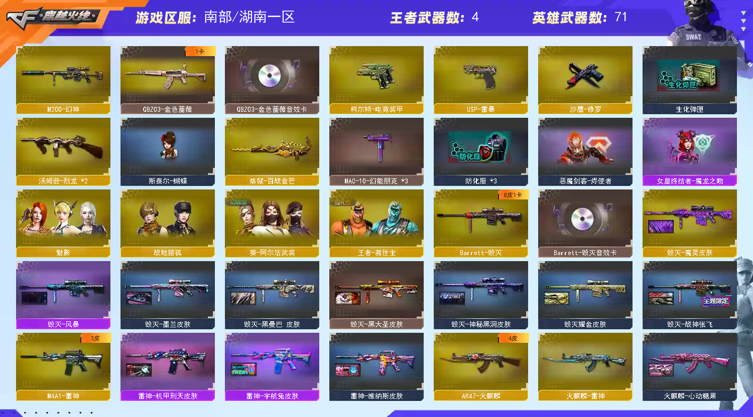 ⚠️⚠️⚠️排位恶意退出或挂机导致禁赛将被拉黑⚠️⚠️⚠️稀有物品有幻神,王者星神,usp雷暴,斯泰尔蝴蝶,王者之魄雷套,雷神,毁灭,火麒麟轻羽,烈火,无影,qbz金色蔷薇,白虎,超新星,天启,烈龙,黑骑士,黑武士,机械迷城,武圣,天神,修罗,幻灵之锋,麒麟刺,屠龙,擎天,雷暴套,幻灵雷套,神工天巧雷套,唐刀神工天巧,电竞装甲雷套,柯尔特电竞装甲,街机小灰机,牛牛枪猫猫枪金色小号,各种小人枪,毁灭孙三炮,海滩汪汪巴雷特,m4雷神精英刀锋,ak灵狐,三防角色有魅影,灵动武士,空,职业选手带两个嘲讽语音包,甜心偶像,王者零,王者救世主,毁灭耀金,魔灵、风暴、战神张飞皮肤,无影耀金皮肤,毁灭音效卡,黑骑士音效卡,金色蔷薇音效卡,全部弹匣,双背包,随意畅选。喜欢此号请好评收藏,上号后若显示机器码严重请换机,若显示已冻结请私聊号主,恶意撤单或排位恶意挂机退出将永久拉黑,被顶号别慌是号主玩英雄联盟。;USP-雷暴,QBZ03-金色蔷薇,M200-幻神,