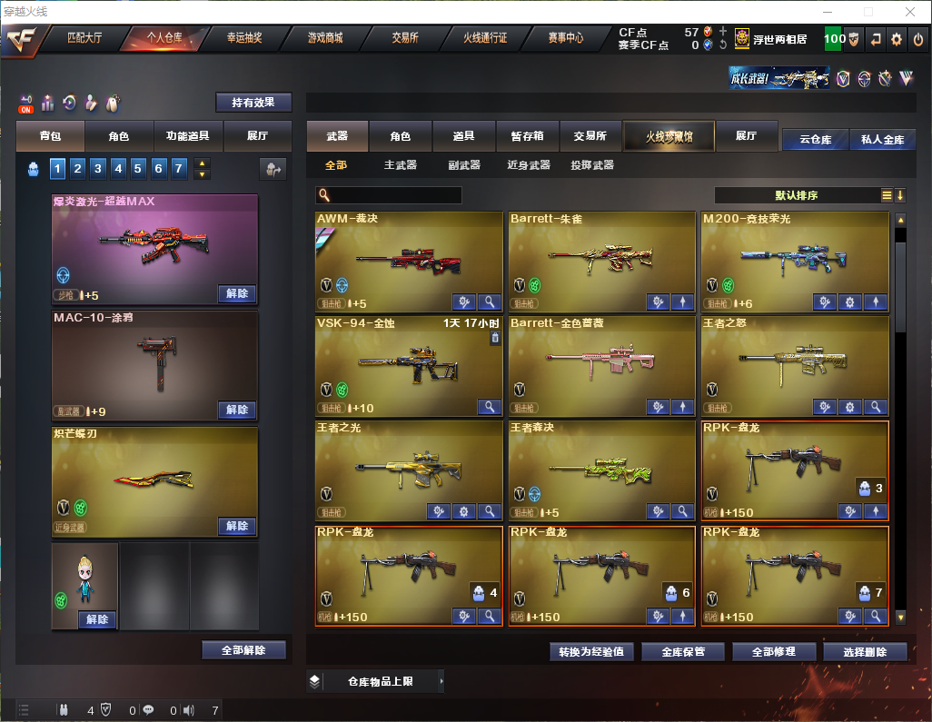 禁止外挂,文明游戏,谢谢合作!(疫情已经够难了,切莫作怪) 谢谢老板,谢谢爹,感激不尽,祝老板好运一生 【主武器】传说灵眸/传说梦魇/M200-幻神竞技荣光/白虎/幻灵/朱雀/斯太尔蝴蝶/异变清道夫/毒蜂/炼狱/炼狱小刚/KAC狂怒咆哮/⑥烈龙⑥盘龙/千变/③火麒麟/④黑龙/④雷神/④黑骑士/死神/黑武士/超新星/武圣/机械迷城/④黑鲨/朱雀HK417/M4幻灵/无影/黑武士/烈火动感闪耀/王者冰魄/天龙/②毁灭/极光/裁决/朱雀大炮/蔷薇大炮/王者森决觉醒/王者之光觉醒/王者之怒觉醒/白虎-迷你小艾/雷神精英刀锋/雷神-枪娘雷安娜/炫金黑龙/炫金无影/炫金毁灭/②爆炎激光超越Max2+2/火域乱世超越Max/地域征服者超越Max/②寒冰征服者超越Max3+2/毁灭征服者超越Max/机甲撕裂者3/双面神/KAC/擎天柱/圣炎切割者3/金魔/黑龙吞噬者/神圣爆裂者3/试炼破坏者3/生存之眼/CAT/A180蓝色骑士/MK5SS秘银 【副武器】USP-神功天巧/柯尔特-竞技荣光/④天神/修罗/武圣手枪/电竞装甲柯尔特/天神动感闪耀/涂鸦手枪 【近身武器】黄金猫猫手套白鲨/迷你钢铁终结者/迷你地域终结者/⑤屠龙/龙啸/③擎天/麒麟刺/电竞装甲尼泊尔/②幻灵之峰/⑤擎天竞技荣光/唐刀神功天巧/屠龙动感闪耀/擎天云海游龙/黄金生化钩/手斧镜/小人挑战刀50个 【投掷武器】⑨迷你生化手雷/⑨高爆竞技荣光+烟闪/②恶棍电竞装甲/手雷云海游龙/手雷动感闪耀 【角色】隼+生化四防/零纪元/葵/零/樱/战地猎狐/堕落女神/乔伊教练/王者葵惊若翩鸿/王者零华冠丽服/王者潘多拉/王者涂鸦/云海游龙/对讲机/炫彩背包/双戒指 【皮肤】毁灭-荣耀之怒-星空皮肤/屠龙-②荣耀之峰皮肤/修罗-冠军之魂-CFS2018皮肤/雷神-星空皮/火麒麟-盘古-华夏之心皮肤/裁决-流光秘银皮肤/白虎-暗星皮肤/星神-璀璨皮肤/ 【音效卡】裁决音效卡/白虎音效卡/毁灭音效卡/雷神音效卡/火麒麟音效卡/极光音效卡/黑骑士音效卡 【道具】元首/全背包/VIP6/AC/烟雾头/闪光镜/变异宝贝/迷雾幽灵/疯狂宝贝/灵魂忍者/伪装幽灵/绿巨人/钩子/防化服/步枪/冲锋枪/机枪/生化弹夹/女皇终结者-魔龙之吻皮肤/钢铁终结者-恶魔终结者-湮灭之柱皮肤/生化爆破全装;隼,RPK-盘龙,Scar Light-白虎,传说灵眸,