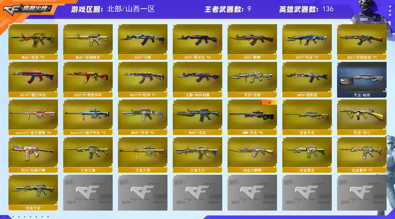 送人头,挂机导致减分直接维权并抠除全部租金,喜欢大家珍惜爱护此号;RPK-盘龙,QBZ03-金色蔷薇,