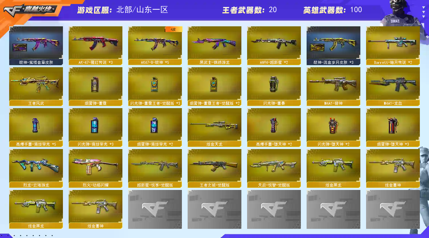 首页 > 租号大厅 > 穿越火线 > 网通区/山东一区 > 爆破号💥幻神+两皮+音效卡💥98k星神+音效卡💥竞技荣光套装💥QBZ金色蔷薇💥白虎💥
