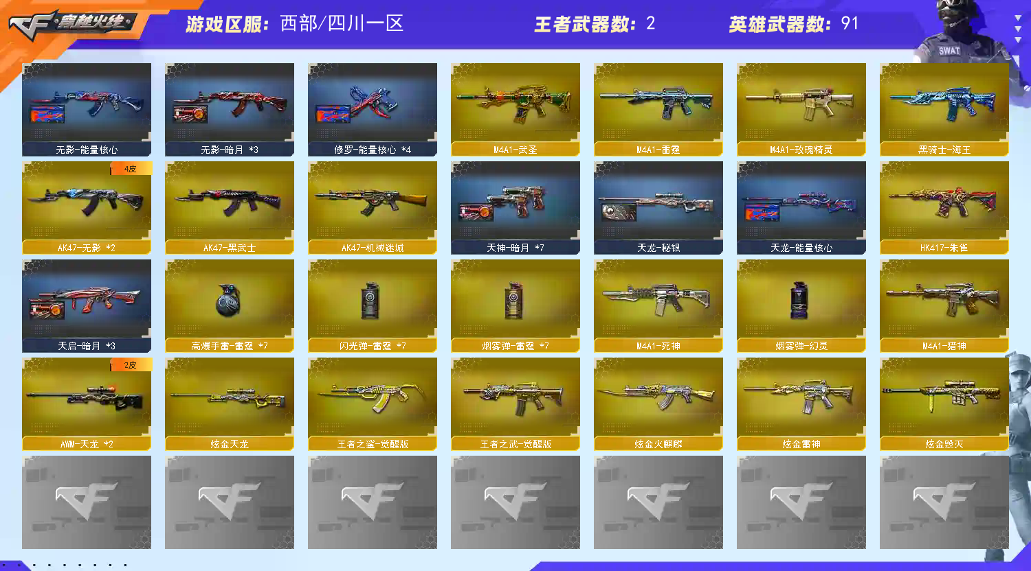 首页 > 租号大厅 > 穿越火线 > 电信区/四川一区 > 西部百V/M-200幻神/COP雷霆整套+王者之鲨QBZ蔷薇朱雀6盘龙7烈+死亡之眼