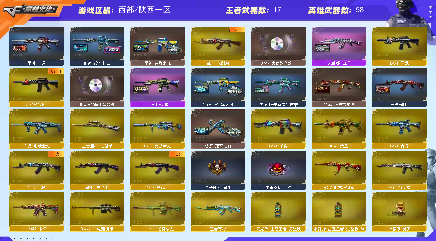• 游戏区服:穿越火线 / 电信区 / 陕西一区