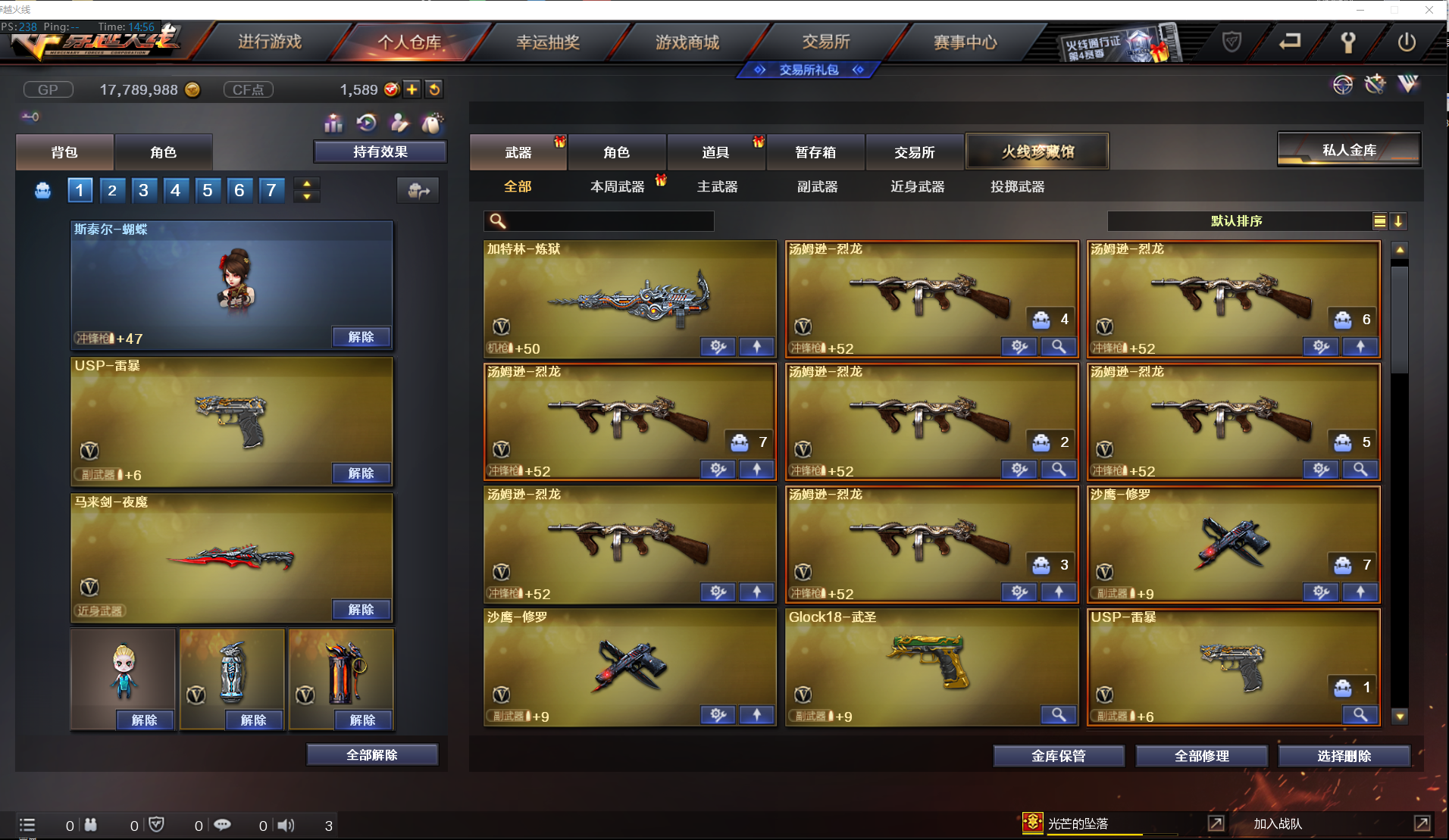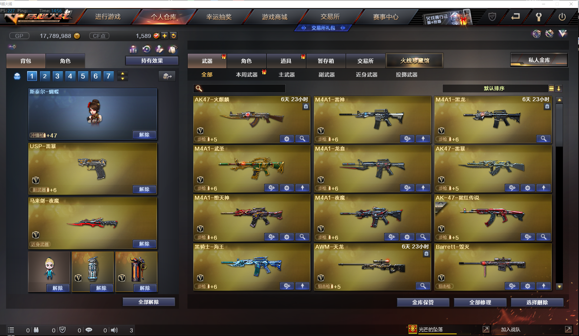 首页 > 租号大厅 > 穿越火线 > 电信区/广东三区 > 生化性价比✅四防凌霄+6烈龙蝴蝶+炽芒蝶刃+USP雷暴✅堕天神全套+夜魔全套✅4COP✅全弹匣