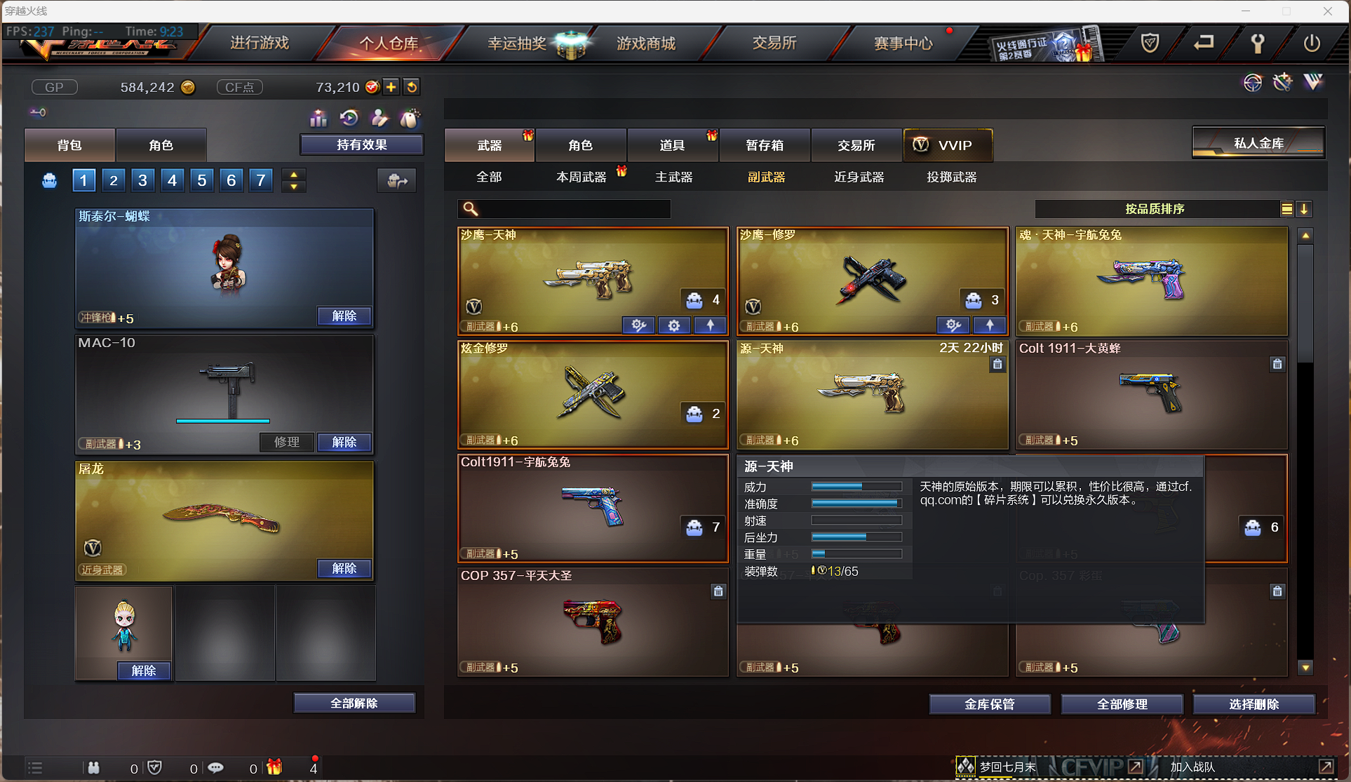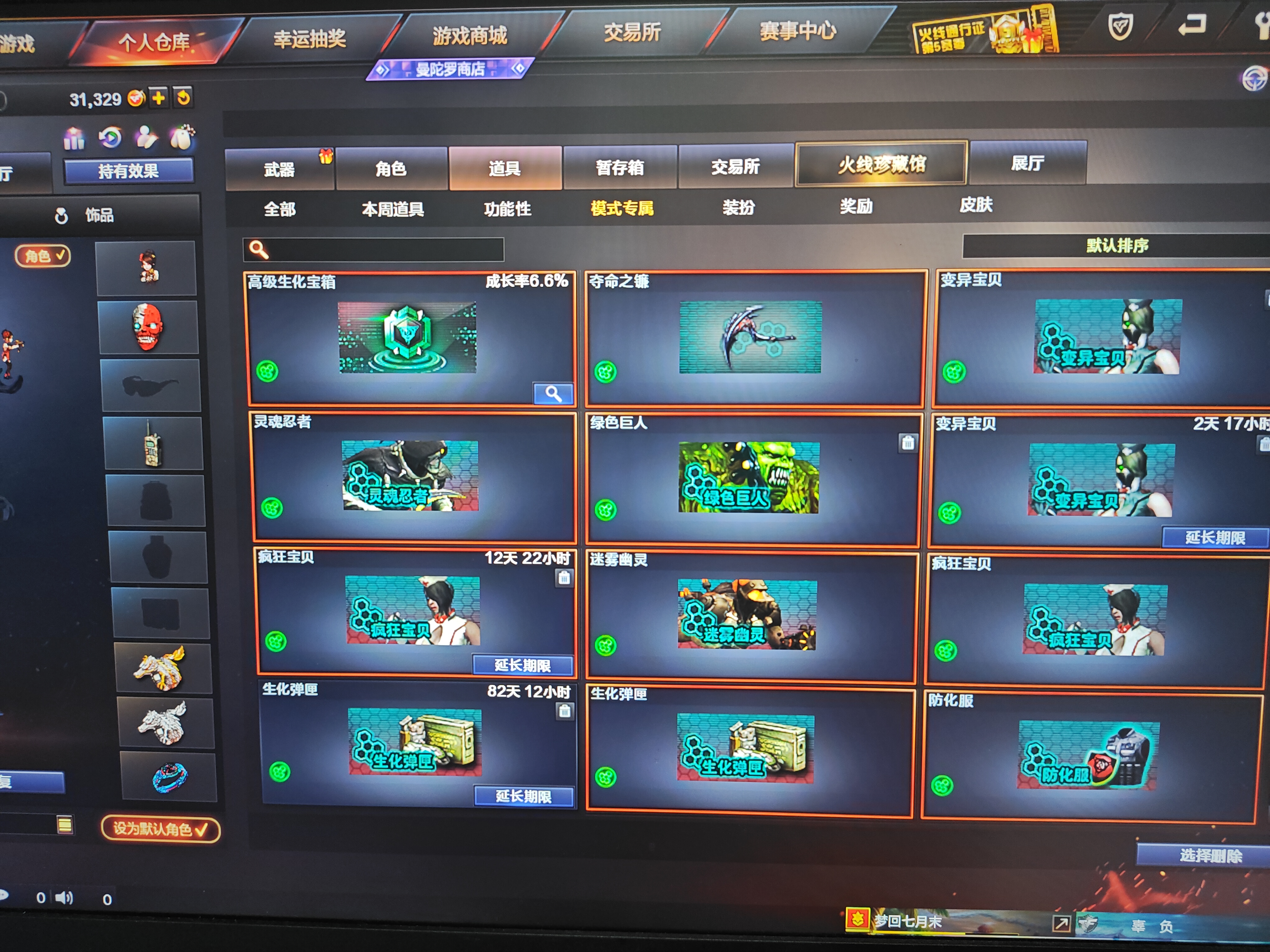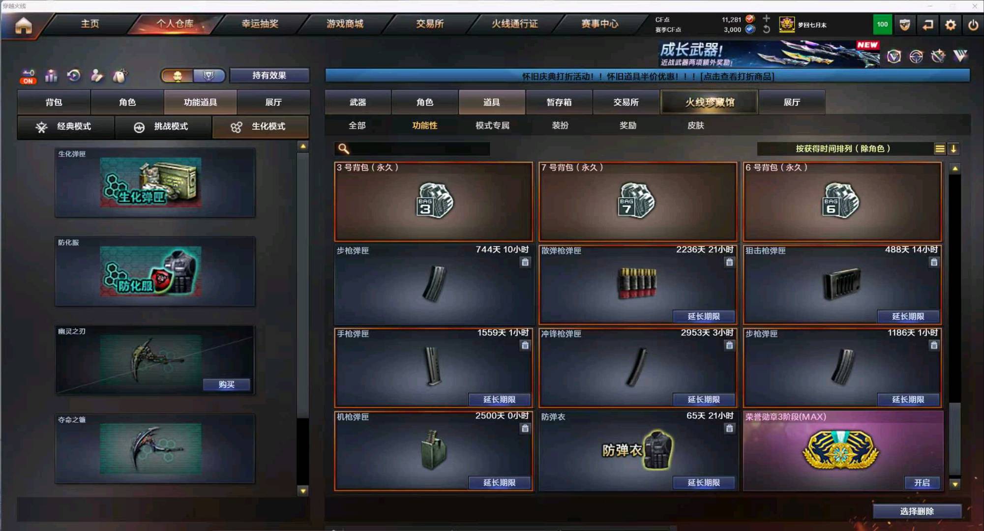 生化爆破双全装 武器:M14EBR玄武,王者森决,6烈龙6盘龙、斯泰尔蝴蝶、加特林炼狱,HK417朱雀,QBZ03金色蔷薇音效卡,Ak47-B战神,电玩蓝兔,巴雷特-暗月传说,火麒麟-灵狐者,M4雷神、黑骑士、死神、玫瑰精灵,AN94超新星,具体看详情截图 角色:新出的灵动武士属性:佣兵觉醒不换弹、捕食者之眼看血量、生存本能防母体,爆破角色西部牛仔防雷防闪防跌落,灵狐者黄金海岸; 道具:减少停顿道具勇往直前不退包、超级对讲机、生化弹夹、防化服、夺命之镰、变异宝贝、机枪弹夹、冲锋枪弹夹、步枪弹夹、狙击枪弹夹、手枪弹夹都齐全,CFvip、双戒指、烟雾头、护目镜、手雷包、c4钳……都齐全的;隼,RPK-盘龙,QBZ03-金色蔷薇,