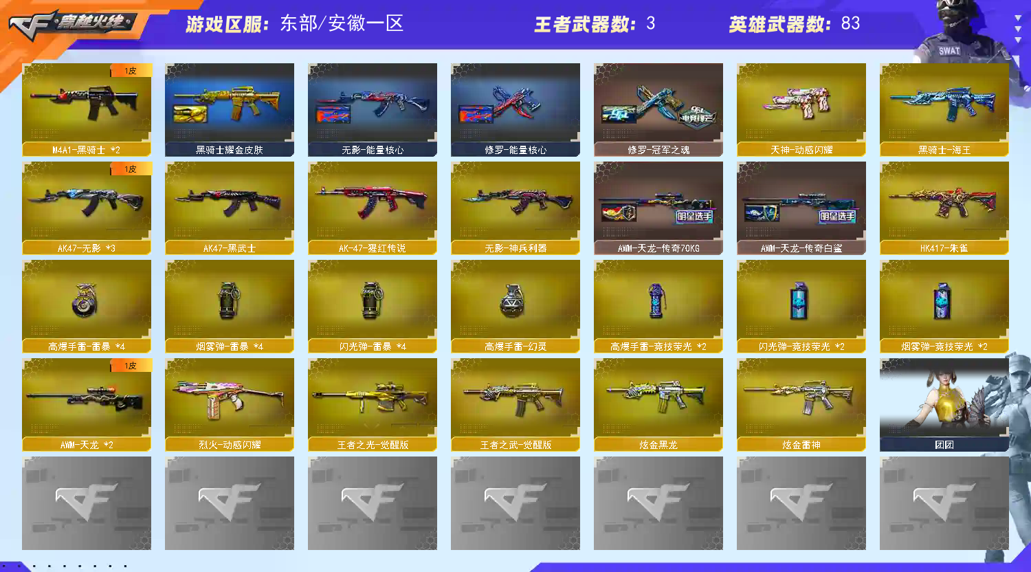 • 游戏区服:穿越火线 / 电信区 / 安徽一区
