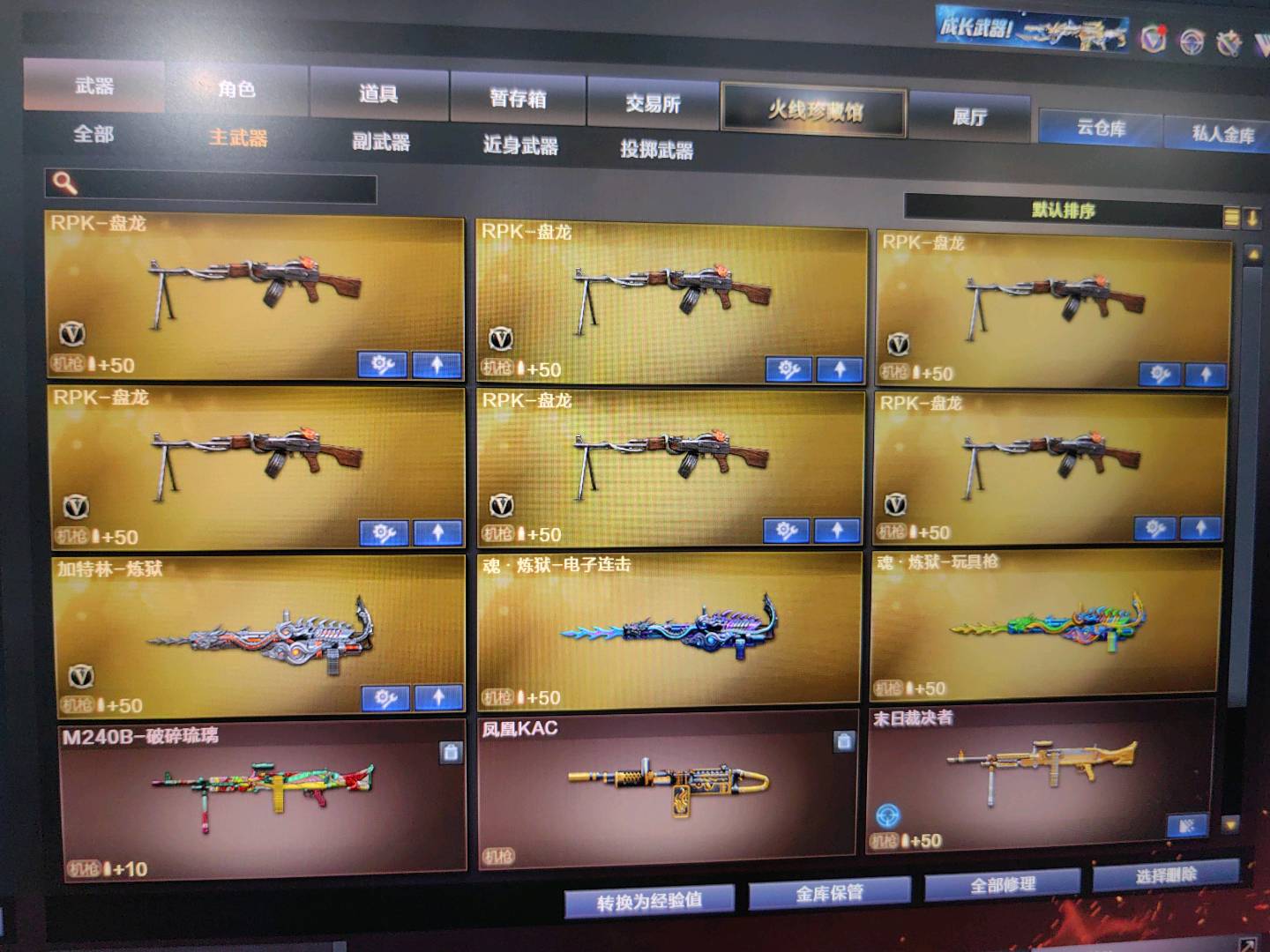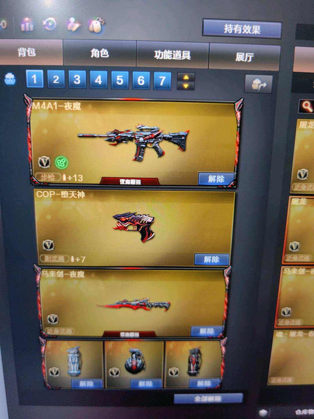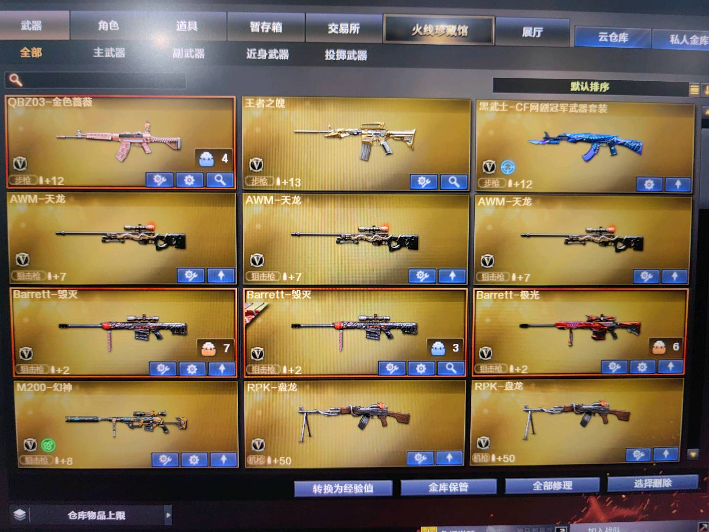 生化爆破双全装 雷神n9 破空枪刃夜魔 7套夜魔手雷 火麒麟/毁灭/极光/黑龙/音效卡 佣兵觉醒属性 6烈死亡之眼6盘炼狱不换弹!!;RPK-盘龙,QBZ03-金色蔷薇,M200-幻神,Scar Light-白虎,