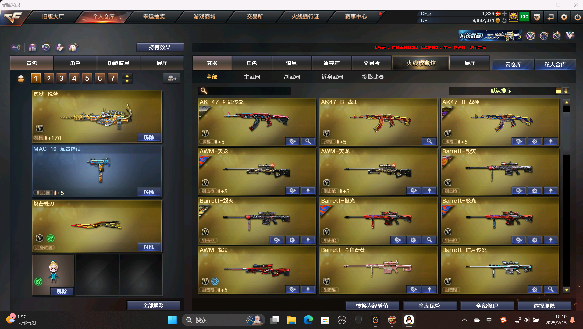 具体看图,毁灭火麒麟音效卡;炽芒蝶刃,传说星骇,电竞教官-云悠悠,RPK-盘龙,QBZ03-金色蔷薇,