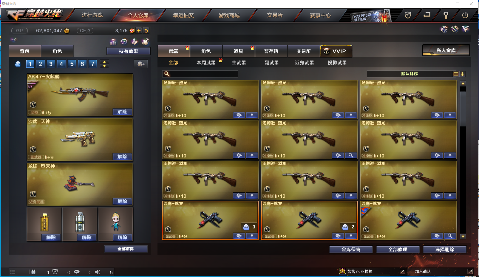 77V6烈龙斯太尔蝴蝶|6盘龙加特林炼狱|毁灭音效卡|夜玫瑰-X佣兵觉醒捕食者之眼|生化爆破全装号 北部战区合区大区(河北一区、辽宁一区、辽宁二区、辽宁三区、山东一区、山东二区、河南一区、河南二区、北京一区、北京二区、黑龙江一区、北方大区、北京三区、北京四区、吉林一区、山西一区)登录的时候选择山东一区。 【编号】:SD255 【角 色】:CFVIP6、蛇影宗(生化四防)、葵、樱、暗夜-X(佣兵觉醒无需换弹)、灵狐者七夕宝贝、雪莉杨(佣兵觉醒无需换弹)、夜玫瑰-X(佣兵觉醒无需换弹、捕食者之眼)、8周年戒指、双龙戒指、双蛇戒指 【主 武】:烈龙X9、斯太尔蝴蝶、盘龙X6、炼狱X3、王者之魄、王者之光、王者之怒、火麒麟、黑龙、雷神、黑骑士(白马银枪)、无影、死神、黑武士、天启、武圣、机械迷城、黑骑士海王、天龙、毁灭(毁灭音效卡)、极光、冰龙粉碎者、激光毁灭者、圣炎切割者、乱世、神圣爆裂者、征服者、金魔等各种活动武器 【副 武】:修罗X3、天神X3、武圣、幻兽、修罗年鹏、1911大黄蜂、MAC涂鸦 【近 身】:屠龙X3、龙啸X2、擎天X2、麒麟刺、斩神刀雷暴、麒麟刺堕天神、龙啸堕天神、女皇利刃幻兽、王者之击、王者之刺 【投 掷】:雷暴套X3、堕天神套、幻神套、音乐手雷、惨叫鸡手雷、凤凰之息、迷你生化手雷、鲲鹏手雷 【道 具】:毁灭音效卡、黄金幸运猪猪玩偶、小兔姬玩偶、7个背包、AC(防弹衣+防弹头盔)、C4工具钳、手雷包、挑战弹夹、夺命之镰、变异宝贝、灵魂忍者、生化弹夹、防化服、机枪弹夹、冲锋枪弹夹、散弹枪弹夹、手枪弹夹、狙击枪弹夹、步枪弹夹、减少停顿包;RPK-盘龙,