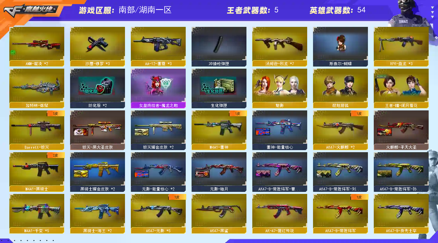 • 游戏区服:穿越火线 / 电信区 / 湖南一区