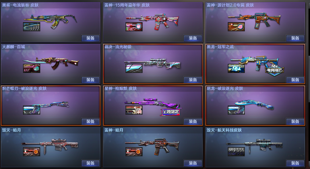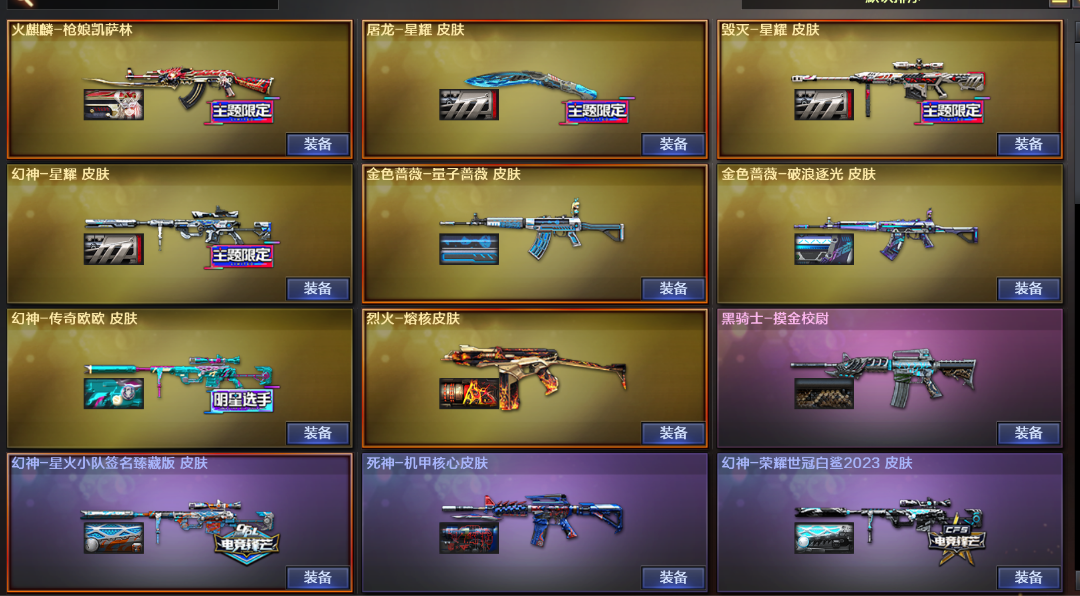 加利尔ACE天袭✅光海夜澜幻神✅幻神三件套✅qbz鲨鱼✅幽瞳✅星神三件套✅幻影✅6烈蝴蝶6盘炼狱
