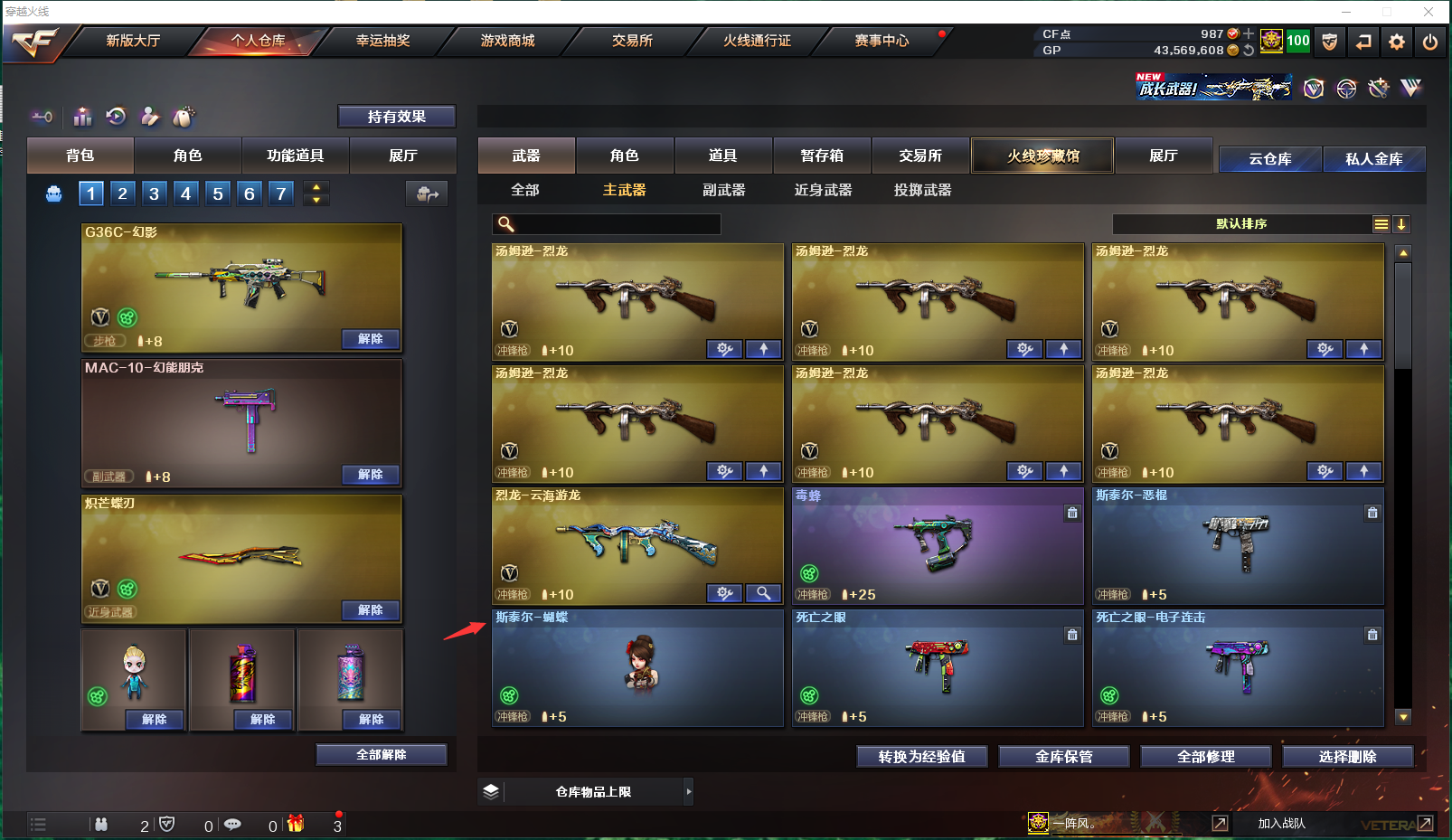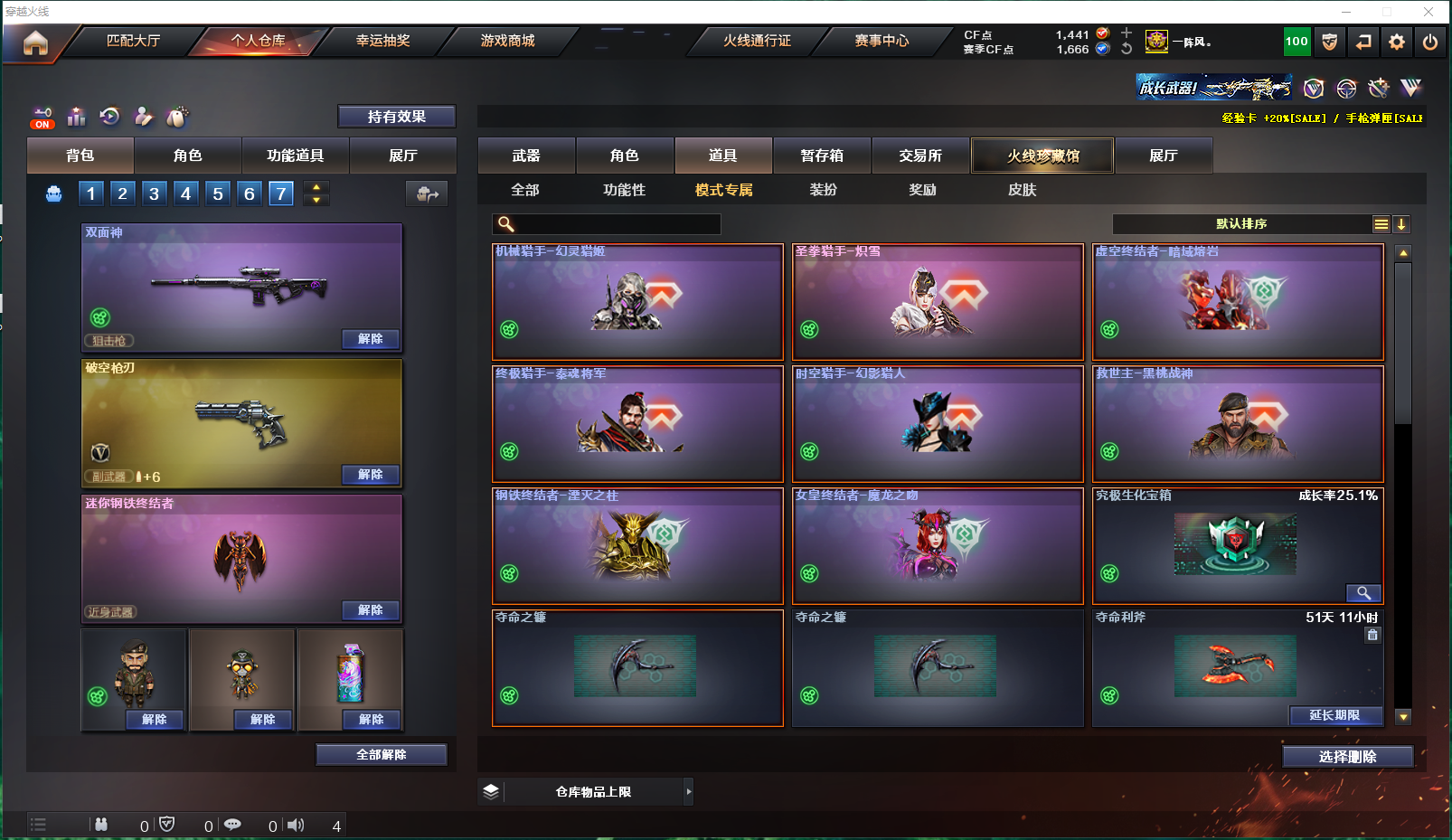 【生化】:炽芒蝶刃(蝴蝶刀,生化加速神刀,最帅的耍酷刀)、斯泰尔-蝴蝶🦋、毒蜂、死亡之眼、双面神、HK21-领域力场、 机械猎手-幻灵猎姬、圣拳猎手-炽雪、虚空终结者-暗域熔岩、终极猎手-秦魂将军、女皇终结者-魔龙之吻、钢铁终结者-湮灭之柱、救世主-黑桃战神 迷你生化手雷、迷你生化手雷-黑桃战神、生化手雷、生化手雷-小钢、生化手雷-机甲核心、雄黄酒手雷、手雷-远古神话 妖姬、变异宝贝、疯狂宝贝、绿色巨人、灵魂忍者、迷雾幽灵、夺命之镰、幽灵之刃、夺命利斧、生化弹匣、防化服、减少停顿道具(不退包)、6盘6烈 关小雨(佣兵觉醒:无需装弹、生化觉醒:狂暴化、捕食者之眼、生化背包变更)、 超能女侍·觉(佣兵觉醒:无需装弹、捕食者之眼、生化背包变更)、 【皮肤】:毁灭-百城浙江皮肤、炼狱-电子连击皮肤、黑骑士-破界皮肤、毁灭-虹光风暴皮肤、雷神-机甲刑天皮肤、火麒麟-百城、雷神-宇航兔皮肤、死神-机甲核心皮肤、黑鲨-电流骇客皮肤、黑龙-能量核心、无影-能量核心、炼狱-玩具枪皮肤、黑龙-暗月、修罗-能量核心、火麒麟-雷神、死神-秘银、毁灭-神秘黑洞皮肤、极光-能量核心、火麒麟-AG战队皮肤、火麒麟-平天大圣、AK47老兵传说皮肤、修罗耀金皮肤、M4A1-千变-孔明皮肤、火麒麟-CFSTAR、修罗-CFSTAR、毁灭-云海游龙皮肤、毁灭-黑大圣皮肤、火麒麟-新春kwai乐 【音效】:屠龙-云海游龙音效卡、修罗-云海游龙音效卡、烈龙-云海游龙音效卡、天神-动感闪耀音效卡 【王者】:王者蔷薇、王者之势、王者之圣、王者之城 【挑战】:《主武器》:冰龙粉碎者-白马银枪、激光毁灭者Ⅲ-白马银枪、乱世-超越2、神圣爆裂者-末日Ⅲ、征服者-超越2、M240B-苍雷、末日裁决者、《近武》:等离切割者、末日之拳、破天斩魔剑、双龙、斩神刀、夺魂、海斯博士双刃、克洛诺斯的凝视、迷你波特博士、迷你牛牛、迷你深渊冰龙、魔能环、魔能镰刀、萨拉坦铁棍、死亡之珠、唐刀-大唐荣耀、唐刀-青花瓷、唐刀-盛世太平、虚空之槌、《投掷》:反应堆手榴弹、魔花手雷、深渊终结者手雷、手雷-波特魔方、无尽虚空手雷、;炽芒蝶刃,RPK-盘龙,QBZ03-金色蔷薇,G36C-幻影,