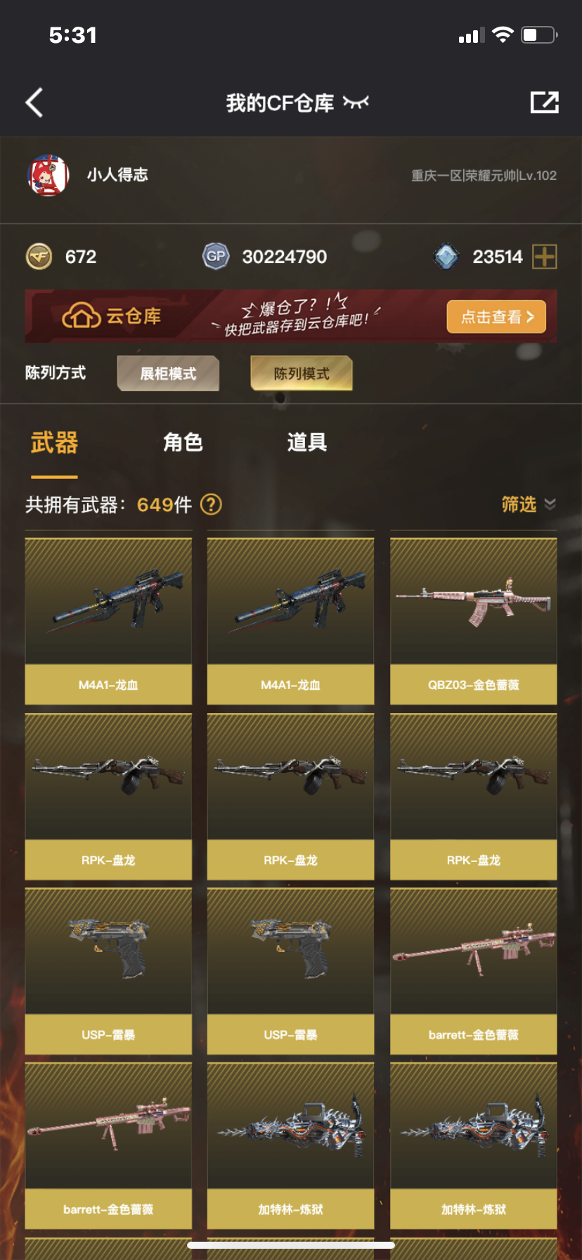 • 游戏区服:穿越火线 / 电信区 / 重庆一区