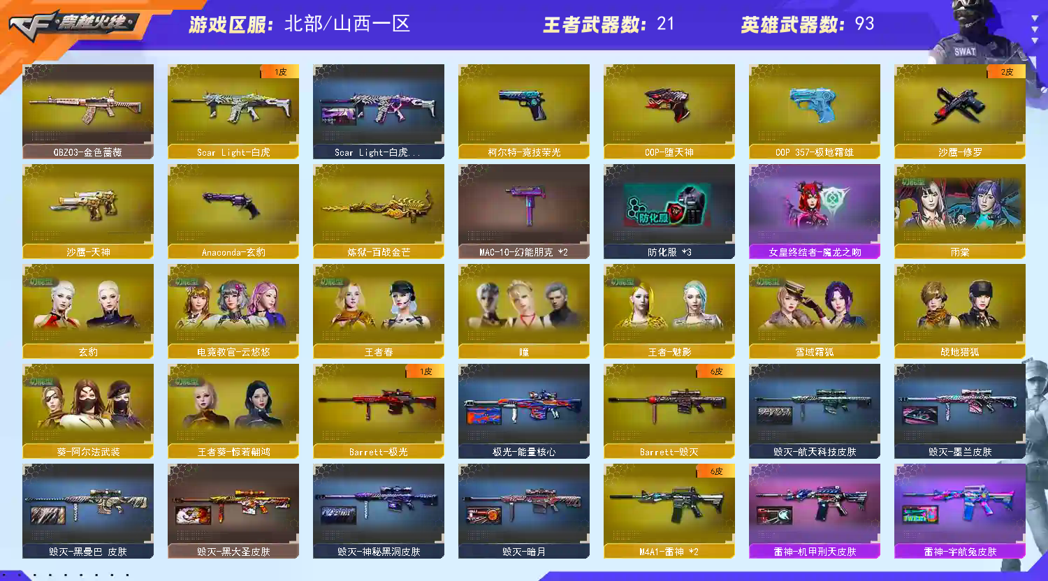 ✨极品爆破号✨雨棠✨纭悠悠✨M200竞技荣光套✨王者星神✨荣耀世冠火麒麟✨荣耀枪王段位✨cop堕天神;电竞教官-云悠悠,QBZ03-金色蔷薇,Scar Light-白虎,