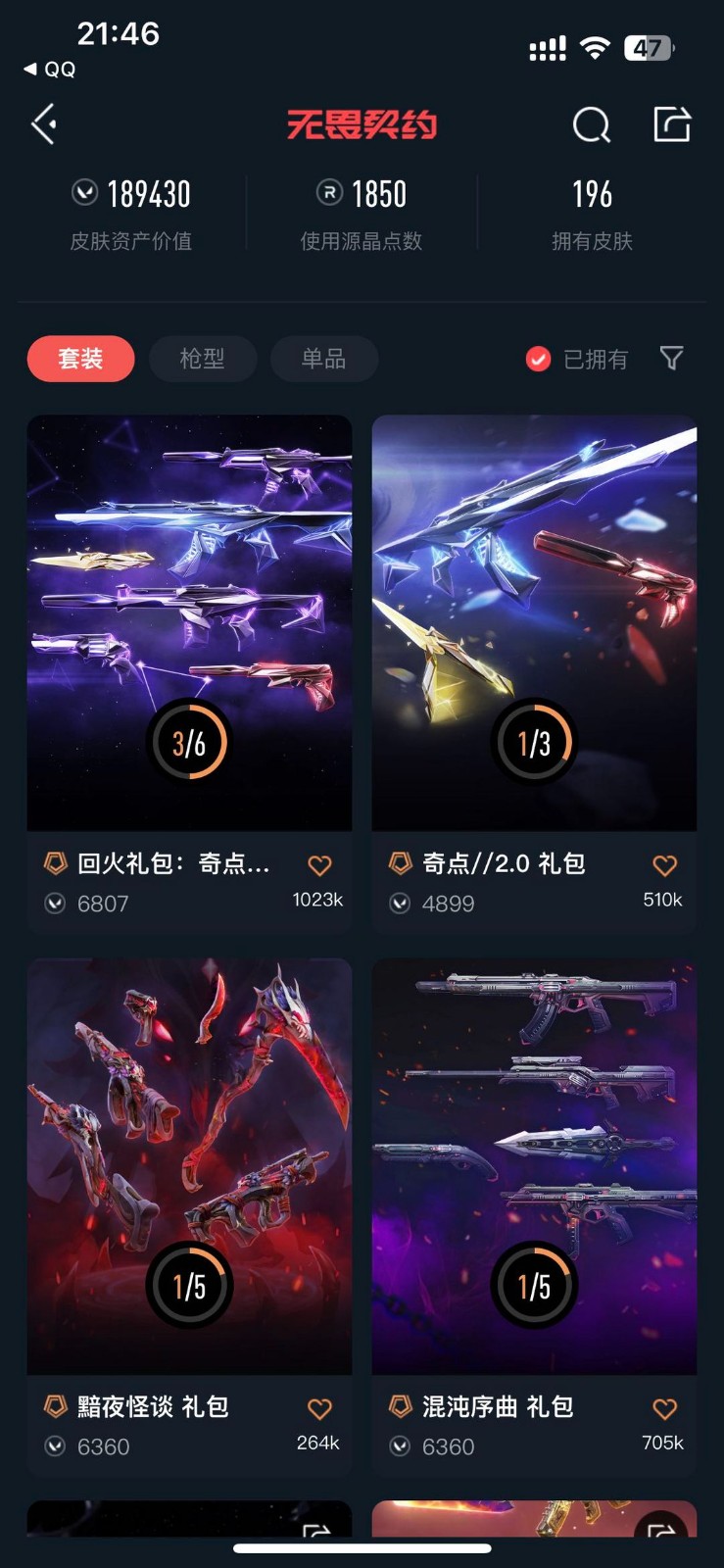 20万库存❤️2124冠军套❤️源能者套❤️洪荒套❤️塑水宗套❤️威龙套❤️日冕雄狮套❤️离子武器套;奇点 战神,黑波之刃,紫金爪刀,剥皮小刀,威龙之刃,天界神兵//2.0 幻影,归零者 獠犬,