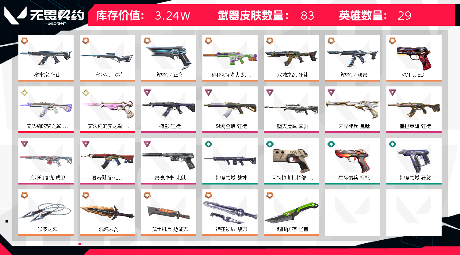 • 皮肤资产价值: 32390