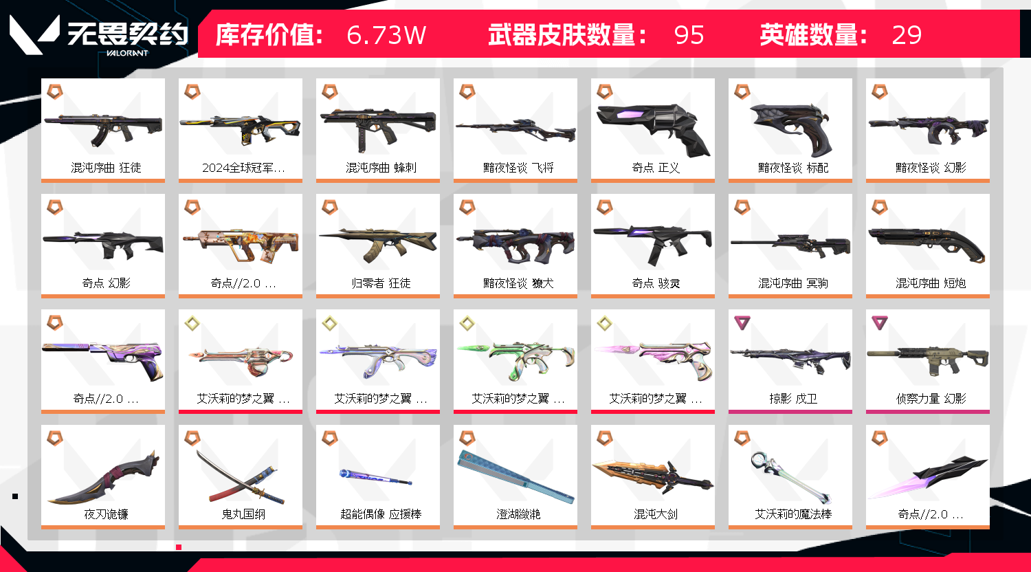 下三极品🔥24冠军套🔥艾沃莉全套🔥混沌序曲全套🔥奇点回火套🔥假面2全套;艾沃莉的梦之翼 奥丁,掠影 戍卫,侦察力量 幻影,紫阙金琅 狂徒,混沌序曲 狂徒,2024全球冠军赛 幻影,混沌序曲 蜂刺,