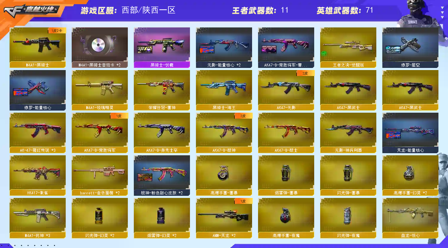 • 游戏区服:穿越火线 / 电信区 / 陕西一区