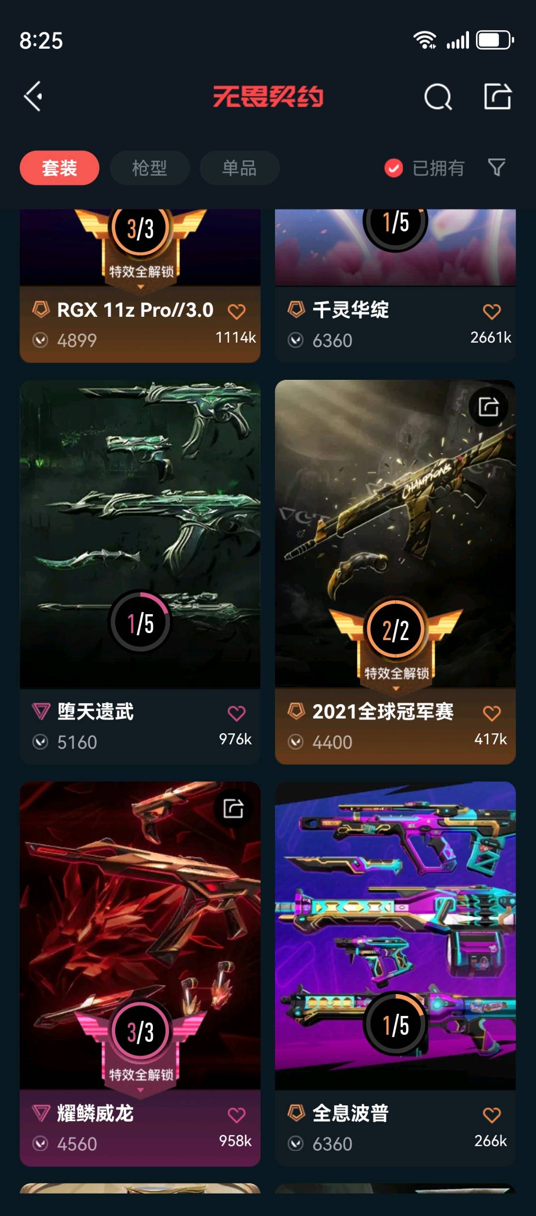 首页 > 租号大厅 > 无畏契约-wegame > wegame/wegame > 🔥5.2万大库存🔥21冠军套🔥西部未来全套🔥RGX全套🔥威龙全套🔥假面2全套🔥