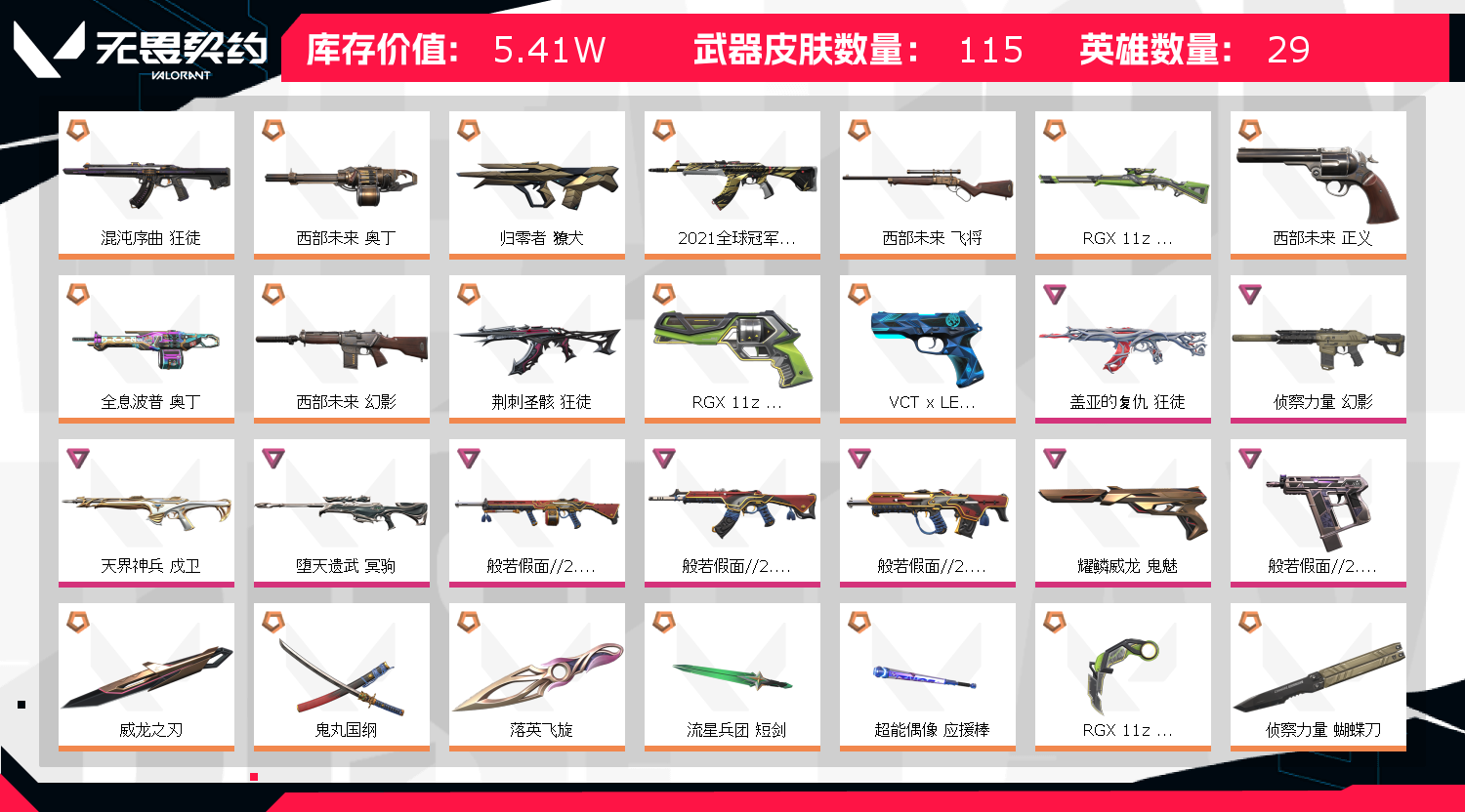 首页 > 租号大厅 > 无畏契约-wegame > wegame/wegame > 🔥5.2万大库存🔥最新荆棘圣骸狂徒🔥21冠军套🔥西部未来全套🔥RGX全套🔥威龙全套