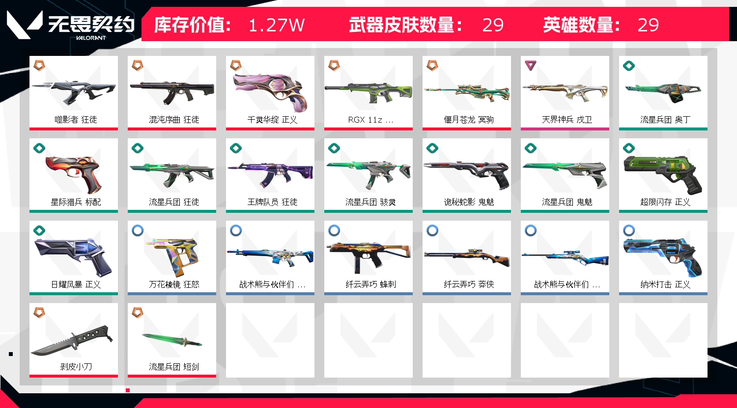 • 武器皮肤数量: 29