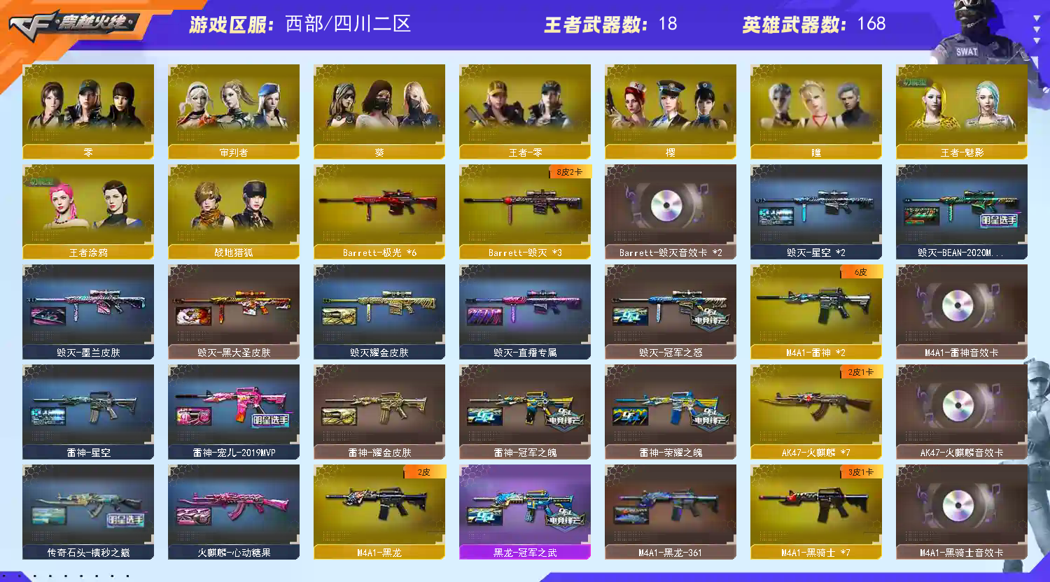 西部高端天花板号 168V可排🔥传说灵眸+幻神两皮+幻神宠儿/N9皮+传说暗裔+星神三件套🔥破竹AG冠军横秒荣耀皮+蝴蝶+小钢+小红+全幻灵+USP雷暴【四川二区登录】【炫金稀有顶1V介意者勿租】【恶意投诉、撤单不想玩了租错号了等非帐号问题1律拉黑】【此号已备案请勿以身试法】【开挂必究账号价值超高】详细武器请看下方 【重要套装】幻灵套装/雷霆套装/堕天神套装/夜魔套装/幻灵套/四防角色 【重要角色】_零/_迷迭香/_瞳/_影豹/审判者/_葵/_樱/王者-魅影/王者涂鸦/王者-零/女主播/职业选手/灵狐者-职业经理/铁骑荣耀/卡塔琳娜 【传说武器】传说暗裔/传说灵眸 【英雄武器】_M200-幻神/王者幻神-觉醒版/Barrett-毁灭(3)/Barrett-极光(6)/Barrett-朱雀/barrett-金色蔷薇(5)/Barrett-暗月传说(2)/Kar98K-星神/AWM-天龙(2)/AWM-裁决/王者之力-觉醒版/M4A1-青龙/M4A1-雷神(2)/M4A1-黑龙/M4A1-龙血/M4A1-黑骑士(7)/黑骑士-海王/M4A1-幻灵/王者之势-觉醒版/Scar Light-白虎/白虎之魄-觉醒版/AK12-天启(2)/AK47-火麒麟(7)/AK47-无影(4)/无影-神兵利器/AK47-黑鲨(3)/AK47-黑武士/AK-47-猩红传说(5)/AK47-B-身先士卒/AK47-B-常胜将军/AK47-B-战士(2)/AN94-超新星/QBZ03-天罚/QBZ03-金色蔷薇(2)/王者之心-觉醒版/QBZ-03-王者蔷薇-觉醒版/9A91-烈火(2)/RPK-盘龙(4)/汤姆逊-烈龙(6)/AA-12-雷霆/加特林-炼狱(2)/COP-堕天神(2)/COP 357-幻灵(2)/沙鹰-天神/沙鹰-修罗(5)/破空枪刃-夜魔/USP-雷暴(2)/麒麟刺(2)/麒麟刺-堕天神/龙啸(3)/龙啸-堕天神/王者之啸-觉醒版/擎天/王者之击-觉醒版(2)/屠龙(2)/雷霆之锋(2)/幻灵之锋/王者之锋-觉醒版/马来剑-夜魔/斩神刀-雷暴/高爆手雷-幻灵(2)/高爆手雷-雷暴(4)/高爆手雷-雷霆(3)/高爆手雷-夜魔(4)/高爆手雷-堕天神(5)/烟雾弹-幻灵(3)/烟雾弹-雷暴(4)/烟雾弹-雷霆(3)/烟雾弹-夜魔(4)/烟雾弹-堕天神(5)/闪光弹-幻灵/闪光弹-雷暴(4)/闪光弹-雷霆(3)/闪光弹-夜魔(4)/闪光弹-堕天神(5)/闪光弹-雷霆王者-觉醒版 【王者武器】王者之武/王者之戮/王者之影/王者之势/王者之力/闪光弹-雷霆王者(2) 【小人枪】M4A1-雷神-精英刀锋/雷神-小红/巴雷特-零-水下丽影(2)/炼狱-迷你小钢/斯泰尔-蝴蝶/降世魔童/迷你深渊冰龙/迷你火种(3)/迷你波特博士(5)/高爆手雷-大乔/闪光弹-貂蝉/生化手雷-机甲核心/深渊终结者手雷/灵狐娃娃手雷 【其他重要武器】炫金骑士(3)/炫金武士(3)/炫金火麒麟/炫金毁灭(2)/M4A1-十二生肖·龙-雷神/M4A1-英雄-能量核心/爆炎激光-超越MAX/激光毁灭者III/机甲撕裂者III/冰龙粉碎者-白马银枪(2)/激光毁灭者III-白马银枪(2)/9A91-赤血龙魂(2)/QBZ03-吕布/AK47-B-十周年/AK-103-火线13周年/AK-47-二次元/HK417-赤龙/AK47-QT/56式步枪-梨花/9A91-2017万圣节(2)/M4A1-樱花/AK-12-CFS2017纪念版(2)/AK12-幽灵/M4A1-肯德基/M4A1-电音/9A91-蓝色骑士/AK47-万圣节2018/M4A1-樱(2)/AK47-肯德基/AK47-樱花/黄金AK-47(2)/AK47-狂欢-CFS/M4A1-狂欢-CFS(2)/AK12-枪王排位/AK47-轮回(2)/HK417-赤血龙魂/HK417-红龙/M4A1-破空冰刃/AK47-破空冰刃/M4A1-紫狱(2)/AK47-枪娘/AK47枪王排位II/百城AK47/AK-47-A-波特博士/AK47-雷蛇/AK-47-红龙/M4A1-S-火种(2)/M4A1-秘银赤龙(2)/M4A1-水枪-机甲核心/M4A1-圣诞2021(2)/M4A1-C-海浪/M4A1-战龙/AN94-青花瓷/M14EBR-炎龙/M14EBR-赤血龙魂/M82A1-红龙/巴雷特-绚樱/AWM-卡通/AWM-十周年/AWM-T(4)/Barrett-孔明/Barrett-怒火大圣/M200-万圣节/AWM-圣诞/FN弩炮-CFS2017纪念版/AWM-恶棍-枪王排位/破天狂龙/M200-赤血龙魂(2)/M200-圣诞/黄金AWM/巴雷特-情人节2020/M200-青花瓷/AWM-Red/Barrett-捣乱兔兔(2)/双面神/M200-大黄蜂/AWM-小故障/破天九龙/AWM-银月/M200-落樱/Barrett-炎龙/M200-朋克/M82A1-飞龙在天/M200-萌杀/巨龙咆哮Ⅲ/KAC-耀龙/MG3-翔龙/KAC-赤烛(6)/KAC-情人节2021/阿梅利轻机枪-暗夜风暴/KAC-小动物(3)/EVO III-赤血龙魂/P90-炫彩/斯泰尔-CFS2017纪念版(2)/斯泰尔-巧克力/异变清道夫/EVOIII-机甲核心/CPW-动力-潘多拉/征服者-毁灭之王 [Lv Max]/试炼破坏者III/SPAS-12-雷电核心/COP 357--绚樱(3)/迷彩沙鹰-70KG/新USP-怒火大圣/凤凰之灵/COP 357-青龙/沙鹰-万圣节2018/凤凰之火/Anaconda-炽焰核心(3)/Cop357-赤龙/沙鹰-枪王排位(2)/Anaconda-雷电核心/COP-机甲刑天/新USP-枪王排位奖励(5)/沙鹰-青龙/沙漠之鹰-A-摸金校尉/COP 357-平天大圣/COP357-神秘黑洞/沙漠之鹰-炎龙/蟒蛇-炫彩/MAC-10-幻能朋克/柯尔特-百城/军用铁锹-赤龙/无畏之矛/丛林匕首-卧龙(3)/斩神刀-御龙/雷神之怒-机甲核心/虹光女皇利刃-枪王排位/斩神刀-青帝/魔能镰刀/丛林匕首-枪王排位/闪光弹-枪王排位(4)/胜利奖杯手雷-枪王排位/烟雾弹-机甲核心 【重要武器皮肤】M200-幻神-N9-2022MVP/幻神-宠儿-2021MVP/巴雷特-毁灭-CFPL冠军/白虎-AG-CFPLS20冠军/毁灭-冠军之怒/雷神-冠军之魄/黑骑士-冠军之势/黑龙-冠军之武/修罗-冠军之魂/龙啸-冠军之啸/毁灭-BEAN-2020MVP/毁灭-星空/毁灭耀金皮肤/毁灭-墨兰皮肤/毁灭-直播专属 /毁灭-黑大圣皮肤/AWM-天龙-传奇70KG/AWM-天龙-传奇白鲨/天龙-CFSTAR/星神-破竹皮肤/雷神-宠儿-2019MVP/雷神-荣耀之魄/雷神-耀金皮肤/雷神-星空/黑骑士耀金皮肤/黑骑士-暗月/黑龙-暗月/M4A1-黑龙-361/火麒麟-CFSTAR/火麒麟-AG/火麒麟-心动糖果/传奇石头-横秒之巅/无影-能量核心/AK47-B-常胜将军-孙权/AK47-B-常胜将军-曹操/战神-流金岁月皮肤/战神-紫绶金章皮肤/战神-粉色甜心皮肤/烈龙-星空/修罗耀金皮肤/修罗-CFSTAR/修罗-能量核心/屠龙-荣耀之锋 【重要光效】AK47-黑武士金色光效/Barrett-毁灭金色光效/沙鹰-修罗金色光效/王者之光金色光
