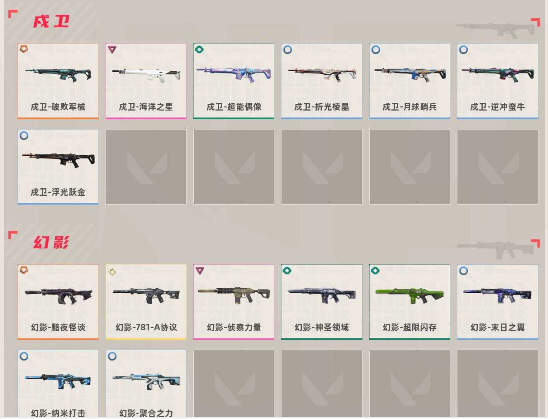 喜欢的老板,麻烦点点收藏,下次租玩更便利,持续更新皮肤中~~~ 刀皮数量8枪皮数量87限定23究极2尊爵12已用无畏点数54530已用源晶点数940 近战武器 近战武器-澄湖滟、近战武器-天玄刀、近战武器-闪耀之星荧光棒、近战武器-显卡3.0爪刀、近战武器-超限闪存匕首、近战武器-荒土机兵热能刀、近战武器-鬼丸国纲、近战武器-神圣领域战刀 鬼魅 鬼魅-天界神兵、鬼魅-破败军械 正义 正义-奇点、正义-塑水宗 2024VCT手枪 标配-VCTxEDG 狂徒 狂徒-紫阙金琅、狂徒-盖亚的复仇、狂徒-塑水宗、狂徒-耀鳞威龙、狂徒-洪荒怒焰、狂徒-艾沃莉的梦之翼、狂徒-混沌序曲、狂徒-掠影、狂徒-双城之战、狂徒-虚空遗器、狂徒-离子武器2.0 幻影 幻影-侦察力量、幻影-781-A协议、幻影-黯夜怪谈 戍卫 戍卫-破败军械、戍卫-海洋之星 獠犬 獠犬-黯夜怪谈 骇灵 骇灵-侦察力量 雄鹿 雄鹿-起源 莽侠 莽侠-归零者2.0 飞将 飞将-塑水宗 冥驹 冥驹-起源、冥驹-堕天遗武 奥丁 奥丁-光明哨兵2.024冠军混沌黯夜怪谈艾沃莉源能者电玩显卡套塑水宗归零者盖世套光明哨兵机动狂飙全息波普破败军械掠夺掠影无畏奇点2.0白银青铜黄金黑铁砖石铂金神话盖亚洪荒离火刃毁灭骑士VCT爪刀创纪元镭切虚空遗器离子2.0西部未来蝴蝶刀黑波显卡AK无畏光荣异象RGX 11Z PRO奇点正义23盖亚铂金22冠军苍龙之刃21冠军超时空卫士掠影2.0影钩赋能掠夺爪显卡AK滋滋X特工队25冠军混沌2.0末日泡泡多弥尔的复仇纳米夺宝ORA颗粒限定;起源 雄鹿,盖亚的复仇 狂徒,虚空遗器 狂徒,洪荒怒焰 狂徒,掠影 狂徒,侦察力量 幻影,紫阙金琅 狂徒,