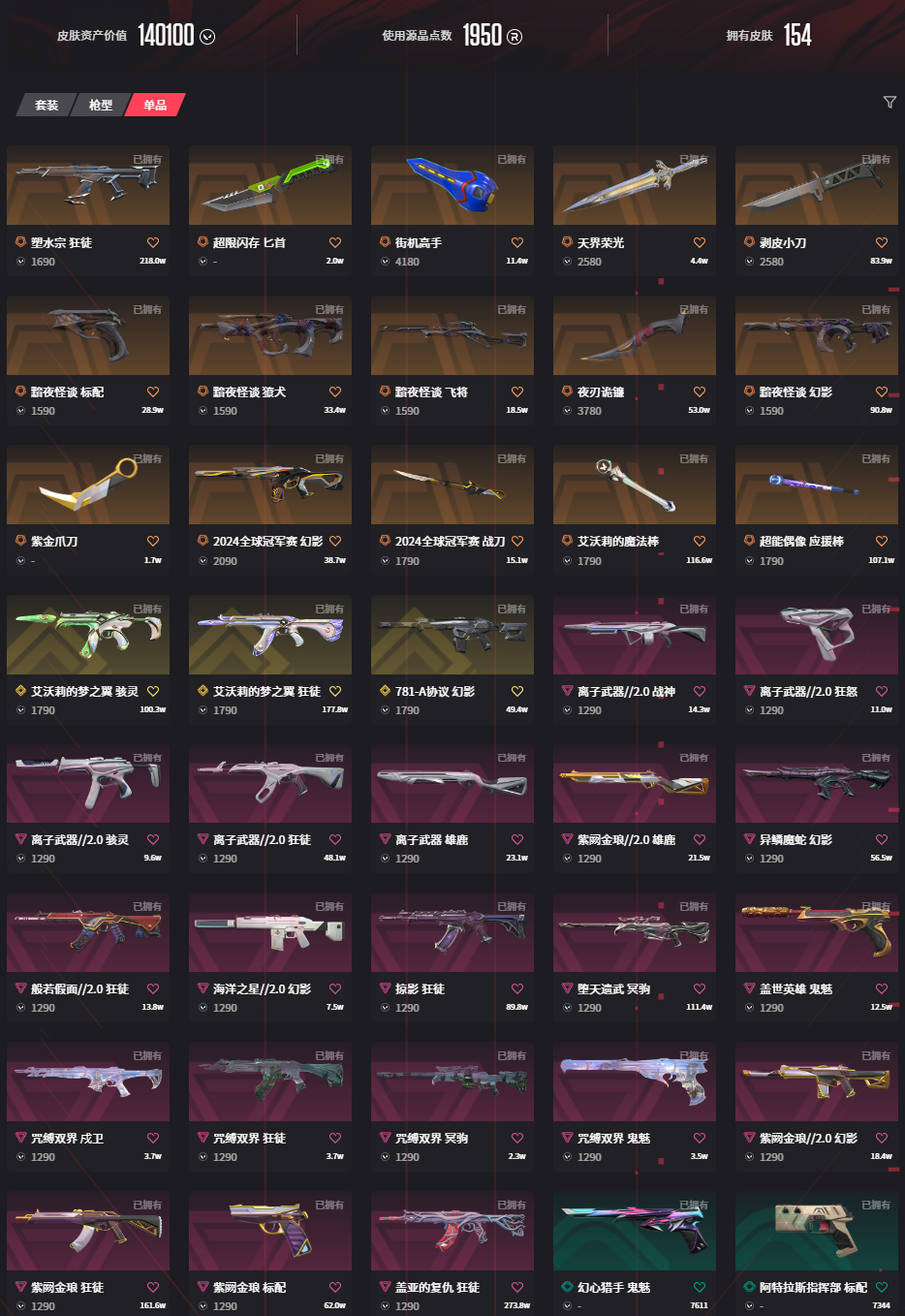 • 皮肤资产价值: 140100
