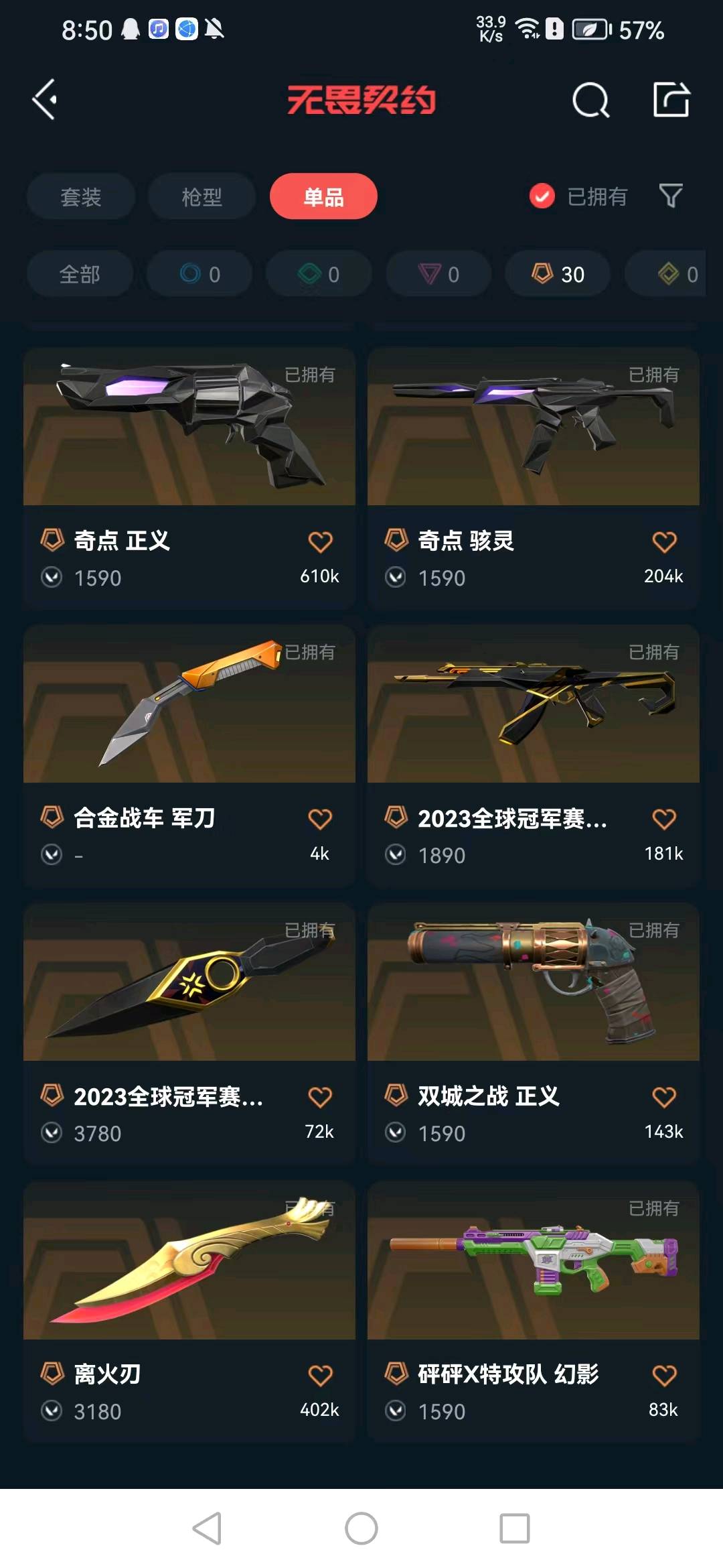 23冠军套❤️离火刃❤️归零套❤️盖亚奇点套❤️双城正义砰M4❤️摩托侦查套❤️天界套❤️