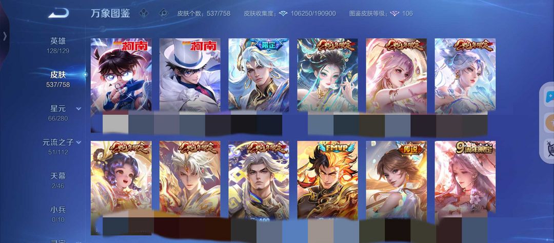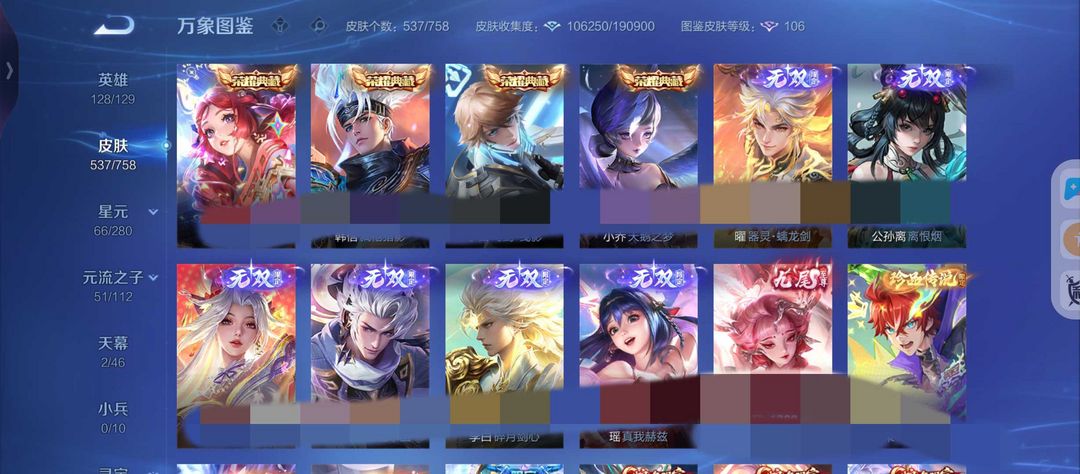 【非云直上】537满皮满典藏12星元◎鲁班新皮◎虞姬星元◎天使星元◎白金战神◎妲己绝版星元