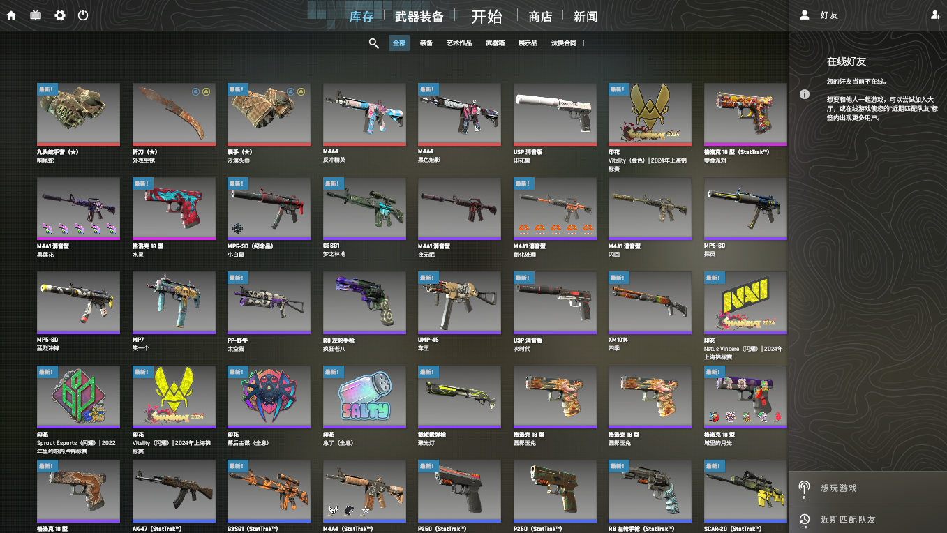 5e授信丶黄宝石牛子丶裹手沙漠头巾丶a4反冲精英丶usp印花集丶a1黑莲花丶超多主战皮肤
