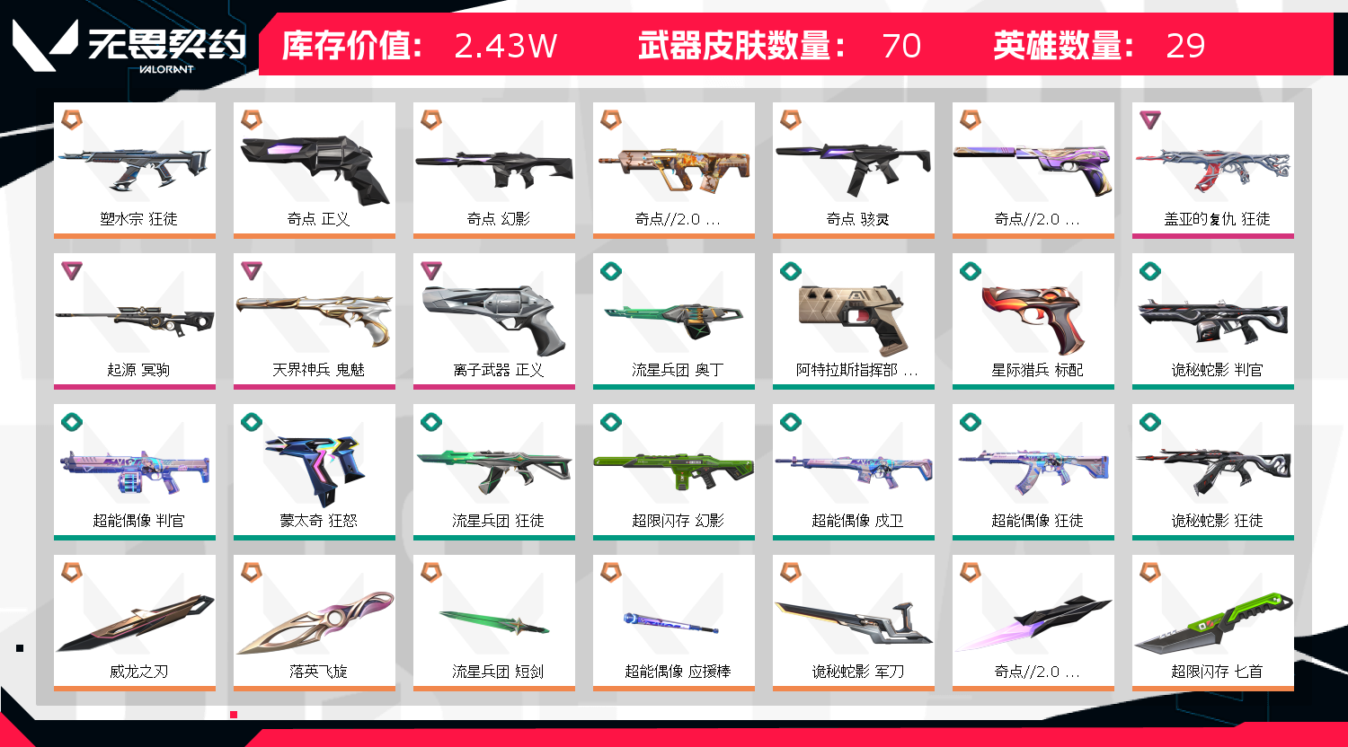 • 皮肤资产价值: 24340