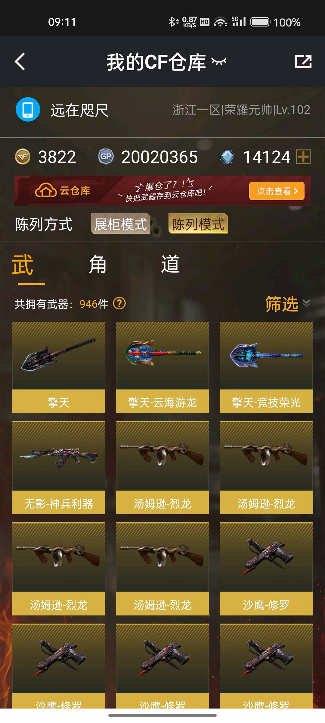 3背包已全开 4防艾丽莎 N9幻神 +音效卡 白虎 王者芳薇 朱雀+音效卡 雷神+赵云 毁灭+ag-pL15冠军皮肤 烈龙斯太尔蝴蝶清道夫;