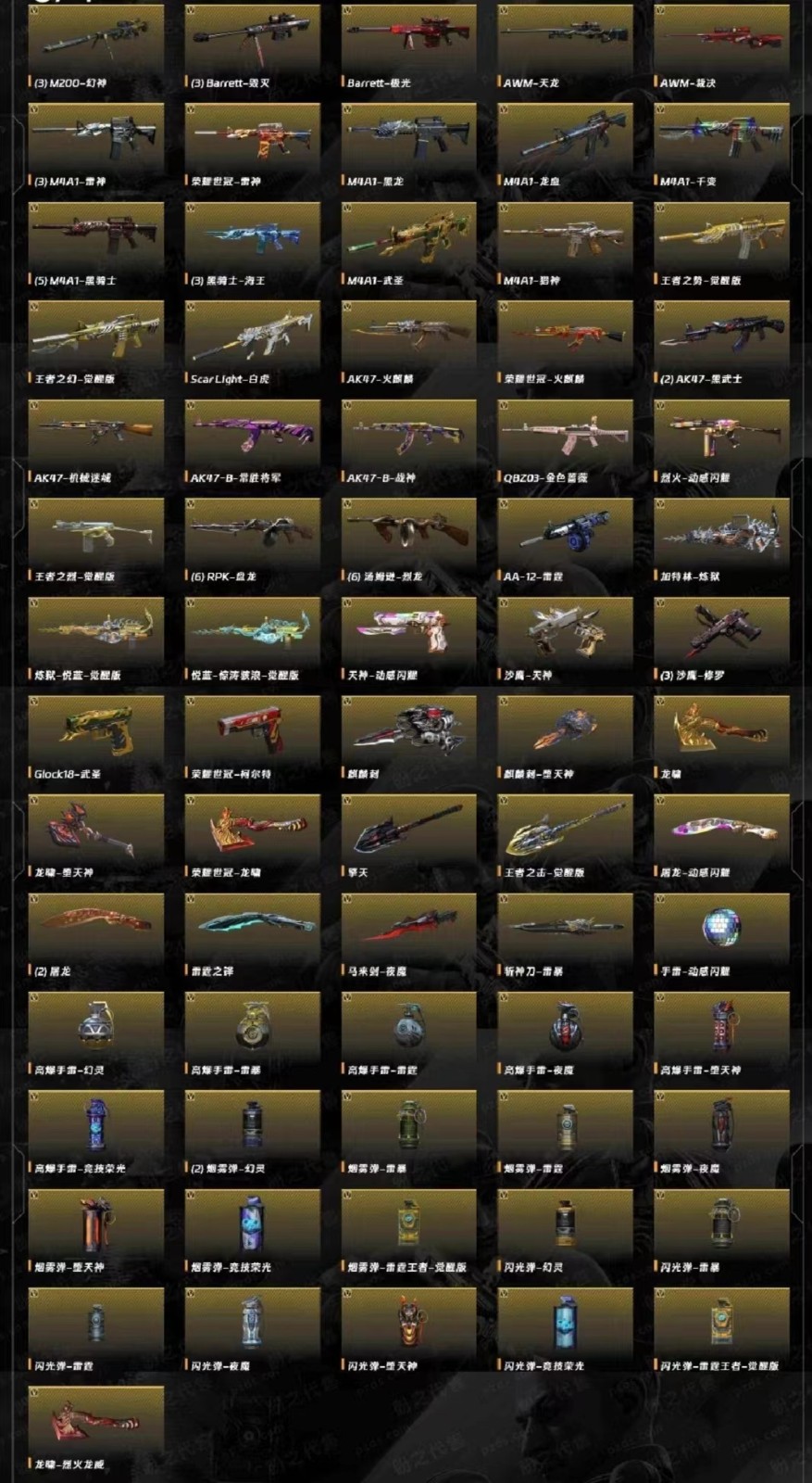 每晚十点后包夜更划算 [音效卡] M200-幻神音效卡 Scar Light-白虎音效卡 QBZ03-金色蔷薇音效卡 M4A1-雷神音效卡 Barrett-毁灭音效卡 AK47-火麒麟音效卡 AWM-裁决音效卡 Barrett-极光音效卡 M4A1-黑骑士音效卡 [武器皮肤] M200-幻神-荣耀世冠白鲨/幻神-冠军之幻/幻神-AG-CFPLS17冠军/毁灭-SV- CFPLS16冠军/巴雷特-毁灭-CFPL冠军/QBZ03-荣耀世冠白鲨/麒麟刺-荣耀世冠白鲨/毁灭-冠军之怒/雷神-冠军之魄/黑骑士-冠军之势/黑龙-冠军之武/擎天-冠军之击/龙啸-冠军之啸/毁灭-CFS2020/毁灭-暗月/毁灭-风暴/毁灭-魔灵皮肤/毁灭-黑大圣皮肤/巴雷特-虎牙平台皮肤/AWM-天龙-传奇白鲨/天龙-CFSTAR/M4A1-雷神-CFS2019/M4A1-雷神-白鲨皮肤/雷神-荣耀之魄/雷神-能量核心/雷神-星空/M4A1-战神赵云/黑骑士-CFS2021/黑骑士-战神马超/M4A1-黑龙-361/AK47-火麒麟-传奇EVEN/火麒麟CFSTAR/火麒麟-AG/火麒麟-巅峰荣耀/火麒麟-平天大圣/无影-暗月/AK47-B-常胜将军-孙权/AK-47-雷神/战神-流金岁月皮肤/战神-紫绶金章皮肤/战神-粉色甜心皮肤/天启-暗月/炼狱-斗鱼皮肤/修罗-CFSTAR/修罗-能量核心/天神-暗月/屠龙-荣耀之锋 【此号全部装备太多就不详细描述了,还有很多神器未截图,普通CF点武器也是一百多个就不截图了(满背包满道具爆破、生化、挑战武器应有尽有多个玩偶主流武器多光效),主流枪械都有皮肤音效卡】 喜欢的老板可以加个收藏,这样下次想玩就不怕找不到了。;荣耀世冠-柯尔特,隼,RPK-盘龙,QBZ03-金色蔷薇,M200-幻神,Scar Light-白虎,