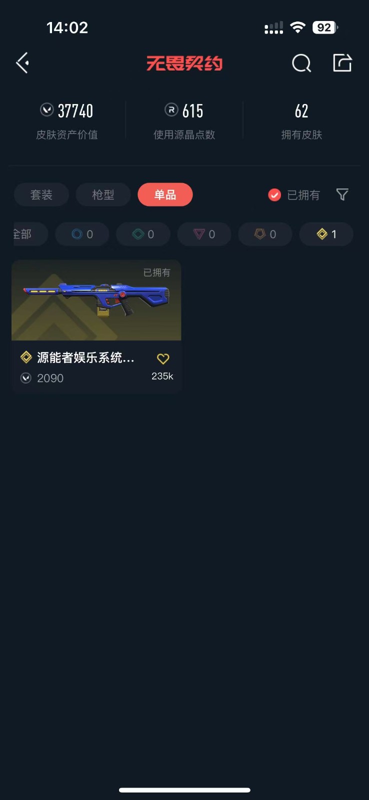 • 皮肤资产价值: 37740
