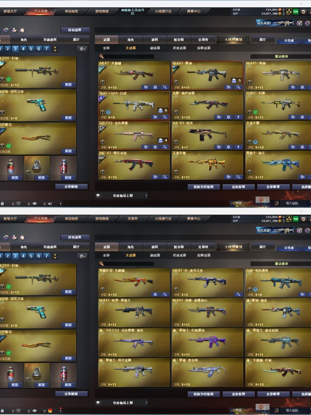 喜欢请收藏此号谢谢!;柯尔特-无冕之王,柯尔特-荣耀世冠白鲨2023,柯尔特-冠军之特,炽芒蝶刃,QBZ03-金色蔷薇,G36C-幻影,M200-幻神,