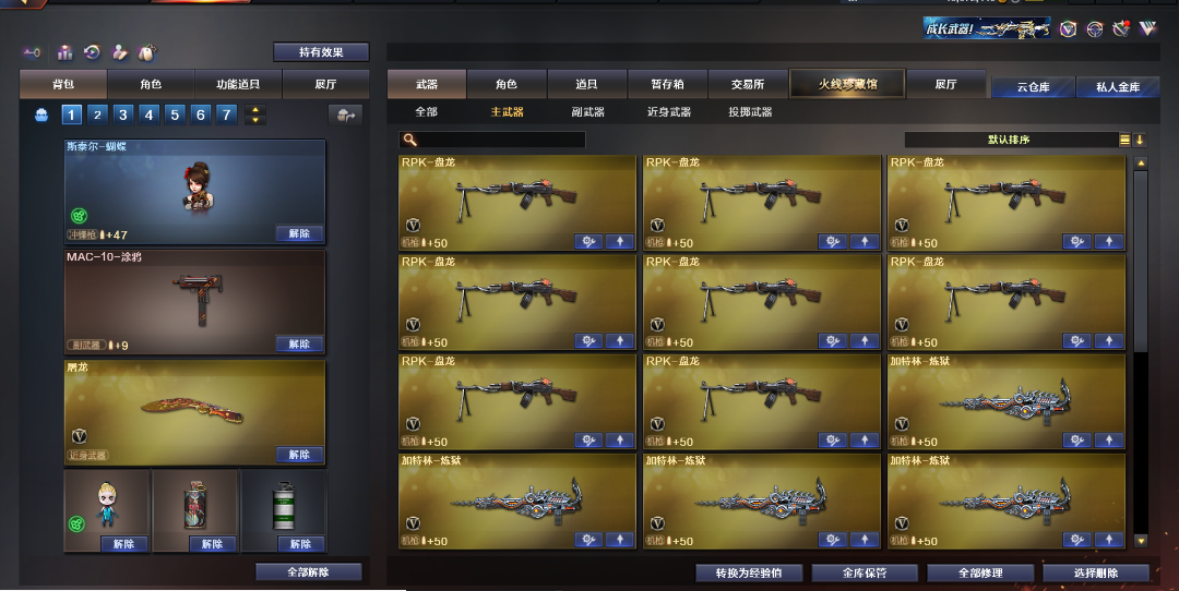 爆破生化号62v 星神白虎裁决雷神音效卡,6列8盘带蝴蝶和炼狱,4防生化角色;RPK-盘龙,QBZ03-金色蔷薇,Scar Light-白虎,Kar98K-星神,