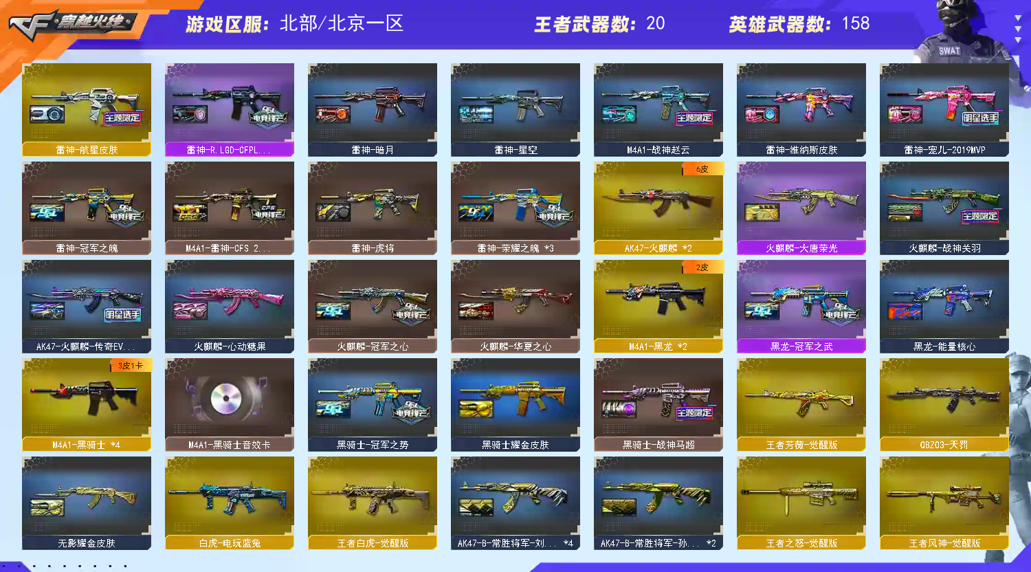>>>>>>毁号,涉及毁坏虚拟财产罪及计算机安全罪,请文明游戏素质游戏,让我们共建美好租号平台>>>>>> 本游戏账号:英雄武器165个; 王者武器21个。 装备不多,但是主武器、副武器、近身武器够用 拥有完美游戏体验。重要的是,特殊装备有:传说梦魇、传说圣灵、传说光耀、闪光弹-竞技荣光、烟雾弹-竞技荣光、擎天-竞技荣光、柯尔特-竞技荣光、加特林-炼狱、HK417-朱雀、AK47-火麒麟、传说暗裔、传说辉光、麒麟刺、M200-幻神、USP-雷暴、M200-竞技荣光、传说灵眸、黑骑士-海王、王者之力-觉醒版、炫金火麒麟、王者星霆、炫金骑士、王者之魄-觉醒版、王者之魄、王者之怒-觉醒版、炫金武士、王者白虎-觉醒版、王者之势-觉醒版、王者之势、王者之怒、王者猎神、沙漠玫瑰、传说女帝、堕天使、M4A1-黑骑士音效卡、王者之魄金色光效、生化弹匣、M200-幻神音效卡、等,随意畅选。 注意事项: A.游戏过程中请不要恶意挂机或者不文明发言 B.恶意挂机、顶号等行为将被拉黑无法再次下单 C.进入游戏后中途请勿退出登陆,否则无法再次上号 D.部分账号由于异地登录可能会出现密码错误提示,通常再尝试5-6;USP-雷暴,柯尔特-冠军之特,炽芒蝶刃,Knife-冠军之刃,沙漠玫瑰,传说女帝,隼,
