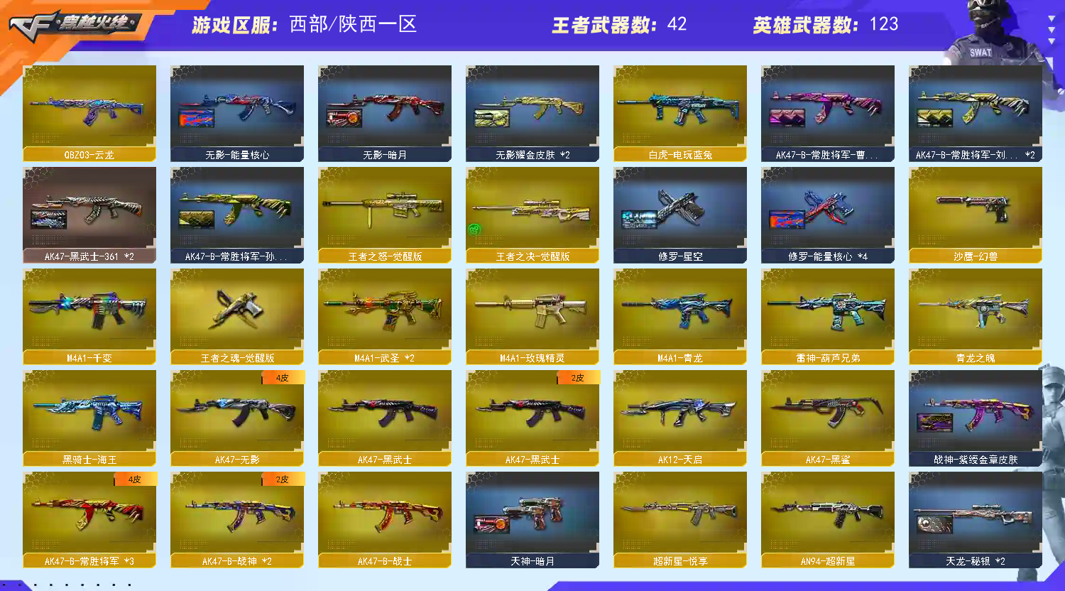 • 游戏区服:穿越火线 / 电信区 / 陕西一区