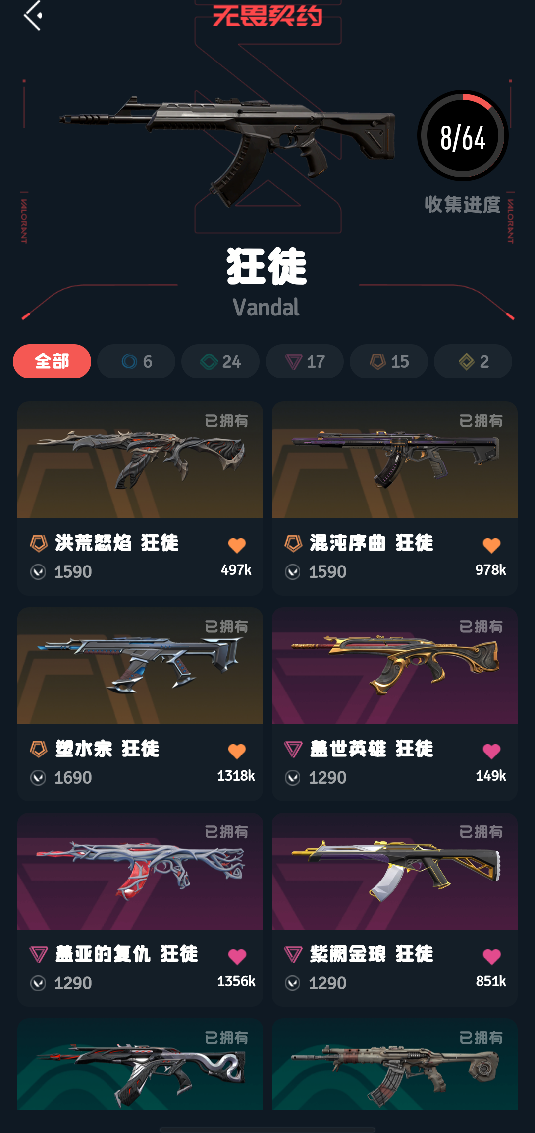• 武器皮肤数量: 64