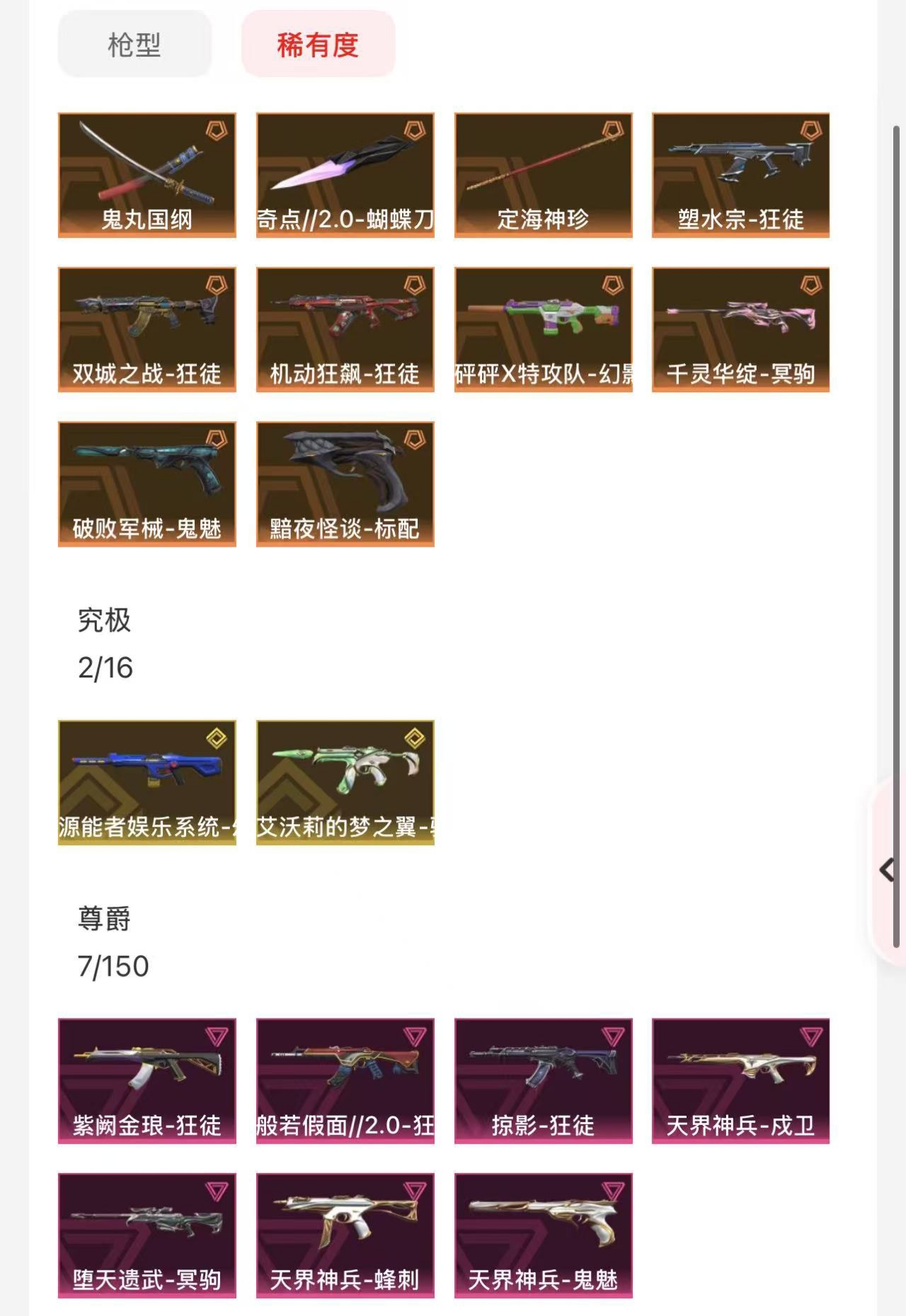 首页 > 租号大厅 > 无畏契约-wegame > wegame/wegame > 已备案勿开挂❤️7.8w库存蝴蝶刀鬼丸双城塑水宗机动狂飙假面紫金掠影狂徒❤️砰砰幻影千灵堕天狙