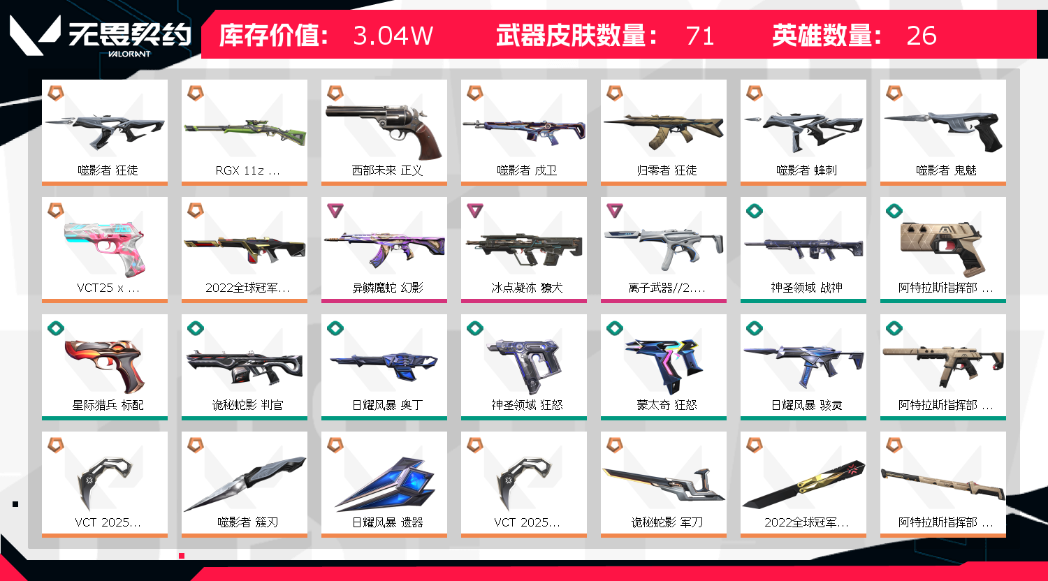 • 皮肤资产价值: 30410
