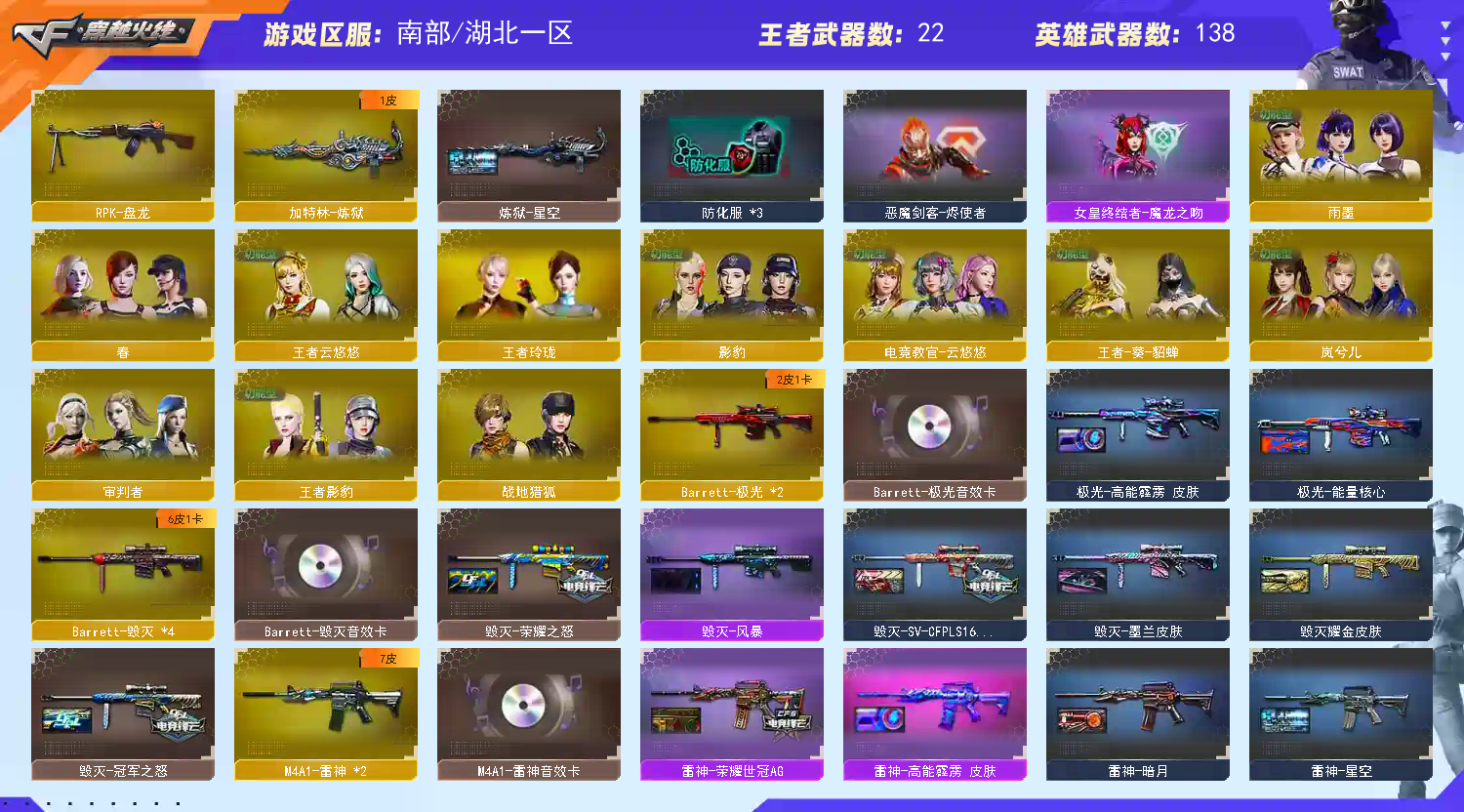 !!!!!!!!!!!!!!!!!!!! 租客必看: 【禁止使用鼠标宏,DMA,外挂进行游戏,造成损失后果自负!!!】 【订单时间快到了禁止再开排位赛,导致账号禁赛的租客将被永久拉黑!】 !!!!!!!!!!!!!!!!!!!! ① 南部 【爆破极品全装】号: ✅爆破: ✨2传说武器 传说幽瞳 | 传说幽冥 ✨英雄级角色 4防传说艾莉莎 | 4防云悠悠 | 4防雨墨 | 岚兮儿 | 4防王者云悠悠 | 4防王者葵貂蝉 | 4防影豹 | 4防王者影豹 ✨幻神4皮带卡 | 幻神-宠儿 | 幻神-荣耀世冠白鲨 | 幻神-星耀 | 幻神-黄忠 | 幻神音效卡 | M200-竞技荣光 | 王者幻神 ✨星神 | 星神音效卡 | 王者星神 ✨裁决 | 裁决-羽擎 | 裁决音效卡 ✨极光 | 极光-高能霹雳 | 极光音效卡 ✨毁灭 | 毁灭-冠军之怒 | 毁灭-荣耀之怒 | 毁灭-Heartshot | 毁灭-SV-CFPLS16冠军 | 毁灭音效卡 ✨QBZ03金色蔷薇 | QBZ03-荣耀世冠白鲨 | 金色蔷薇音效卡 ✨白虎 | 白虎-电玩粉兔 | 白虎音效卡 | Scar Light-马枪 | 白虎-电玩蓝兔 ✨雷神 | 雷神-荣耀之魄 | 雷神-荣耀世冠AG | 雷神音效卡 ✨火麒麟 | 火麒麟-传奇EVEN | 火麒麟-冠军之心 | 火麒麟音效卡 ✨黑龙音效卡 | 黑骑士音效卡 | 朱雀音效卡 ✨满副武器: 1)COP*3 = COP幻灵*2 + COP雷霆 2)柯尔特*4 = 冠军之特 + 柯尔特-竞技荣光*2 + 柯尔特-赛博朋克 3)USP*1 = USP-雷暴 4)传说幽冥 ✨冠军之刃 ✨炽芒蝶刃 ✨4烈龙 | 斯泰尔蝴蝶 ② 有什么问题请填写真实理由【不要无故撤单】否则拉黑,本店将拉黑【恶意撤单/排位离线】的不文明租客;
