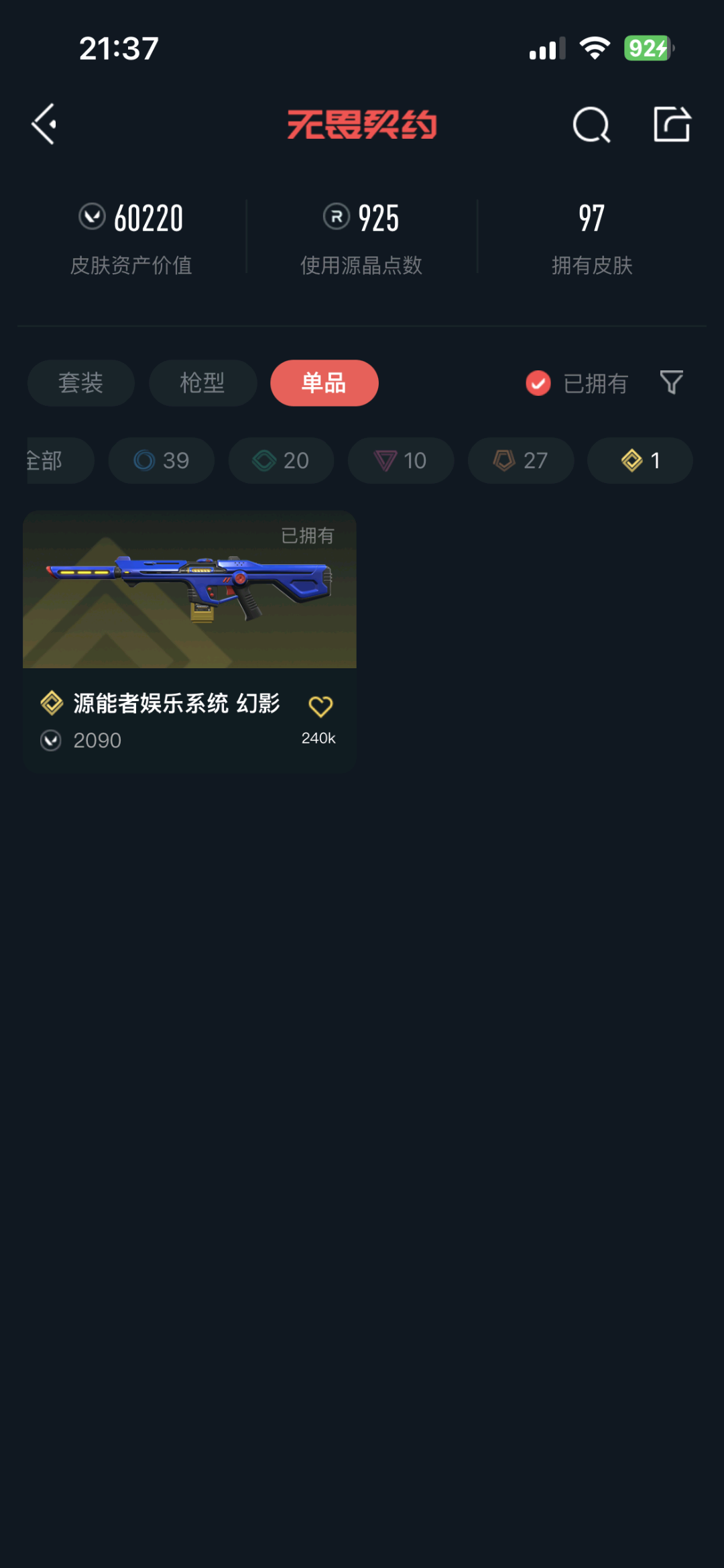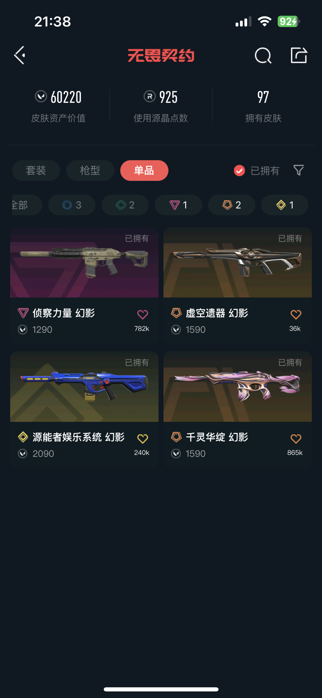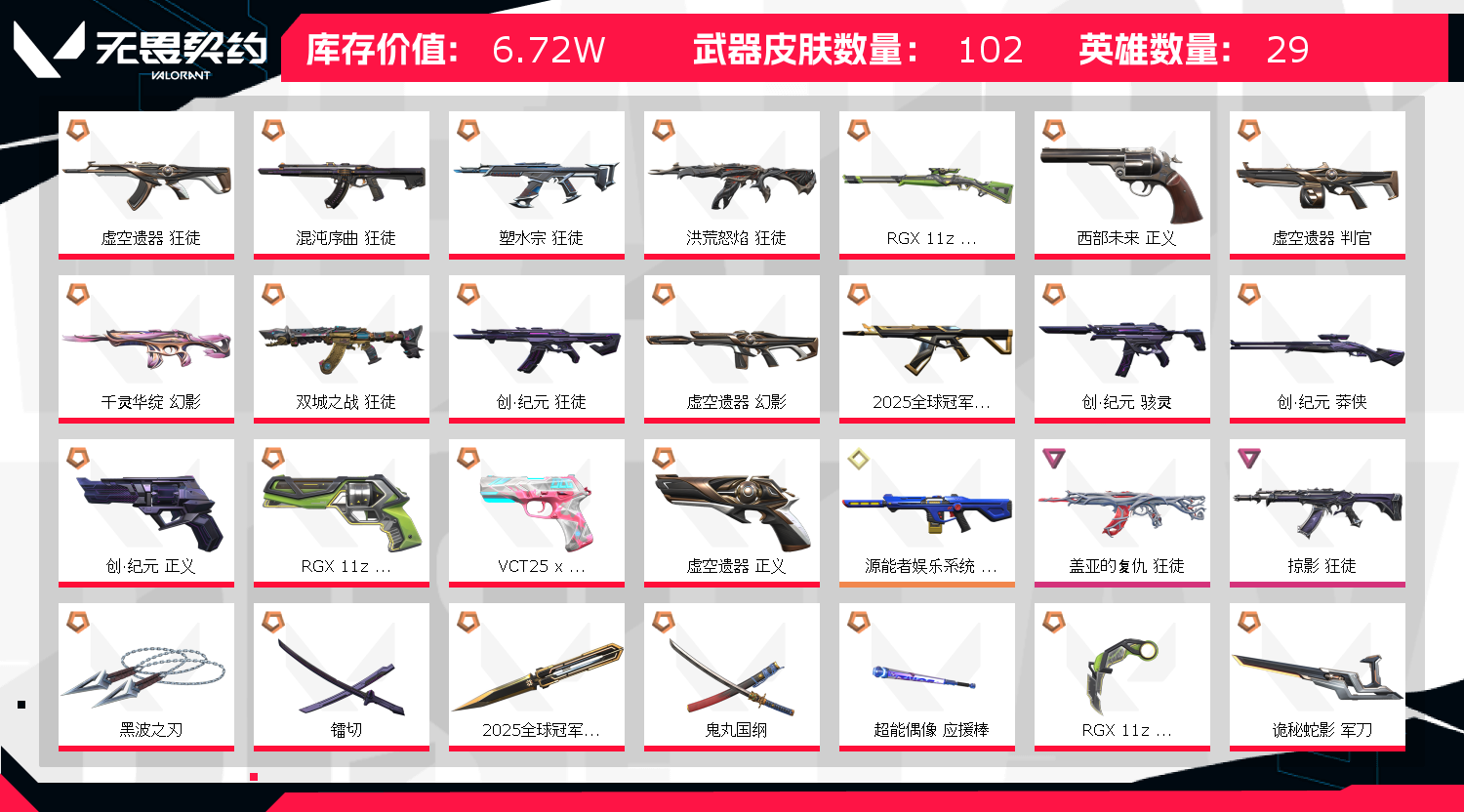 • 皮肤资产价值: 67180