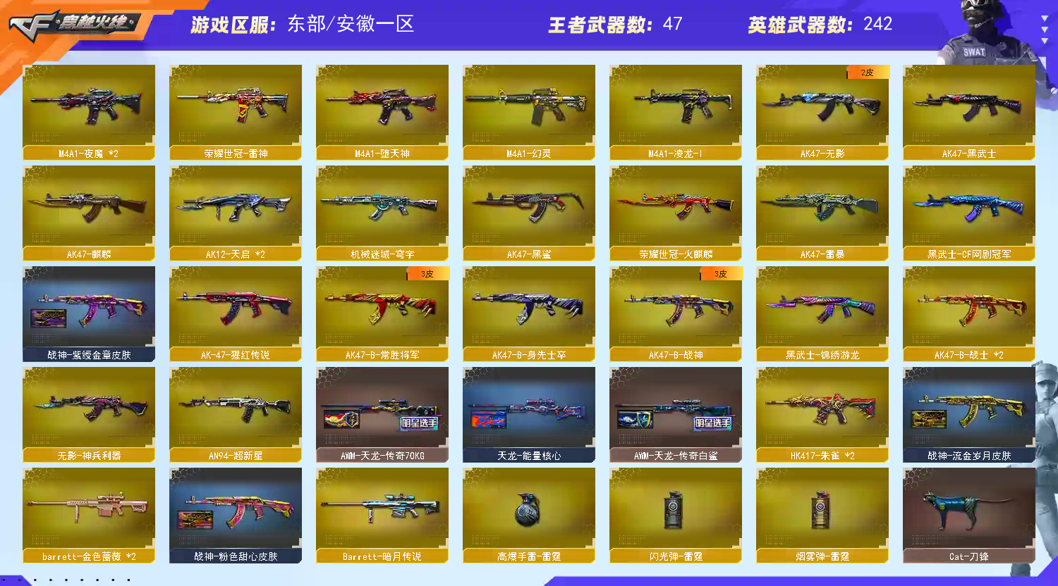 【幻神3件套!!!】【白虎3件套!!!】【m200幻神+幻神音效卡+宠儿皮肤+n9皮肤+丹凤皮肤+王者幻神+传说破晓+usp雷暴*2+炽芒蝶刃】【m200竞技荣光套装*2+电竞教官云悠悠】【98k星神+ags21冠军皮肤】【传说光耀 传说破晓】【白虎*2+白虎音效卡+暗星皮肤】【qbz03金色蔷薇+芭蕾特金色蔷薇+qbz03王者蔷薇】【6盘龙+6烈龙+4炼狱+斯泰尔蝴蝶】【6黑骑士】【雷暴套装】【荣耀世冠套装】【幻灵套装】【堕天神套装】【网剧冠军套装】【金蚀】【hk417朱雀+芭蕾特朱雀+青龙】【火麒麟+火麒麟音效卡+even皮肤+荣耀世冠ag皮肤】【毁灭+毁灭音效卡+荣耀之怒皮肤+sv冠军皮肤+呛娘皮肤】【雷神+雷神音效卡+宠儿皮肤+荣耀世冠ag皮肤+传奇n9皮肤+冠军之魄皮肤+荣耀之魄皮肤+白鲨s14冠军皮肤】【黑骑士+黑骑士音效卡】【黑龙+黑龙音效卡】【极光+极光音效卡】【王者炎心 王者凤吟 王者冰魄 王者风势 王者火魄 王者之城 王者之心 王者之翼 王者之影 王者之幻 王者之戮 王者之魄 王者之势 王者之魄 王者之光 王者之决 王者之力 王者之怒】【烈火 天启 常胜将军 身先士卒 战神 黑鲨 超新星 猎神 龙血 玫瑰精灵 死神 武圣 黑武士锦绣游龙 超新星热带奇洋 无影神兵利器 天龙 暗月传说 aa12雷霆 】——【热门武器/小人呛】【雷神精英刀锋 火麒麟绝迹 火麒麟灵狐 雷神小红 王者ak47萌萌银发刀锋 裁决雪莉杨 天龙曼陀罗 cop白鲨 斯泰尔蝴蝶 芭蕾特零水下丽影 金刚伞 金色小号 猫猫手套】——【传说破晓 usp雷暴*2 cop堕天神*3 cop幻灵*2 cop雷霆王者 柯尔特竞技荣光*3 破空呛刃 荣耀世冠柯尔特 天神 修罗 天神网剧冠军 王者之灵】——【炽芒蝶刃 幻灵之锋 龙啸 龙啸堕天神 马来剑夜魔 龙啸热带奇洋 尼泊尔雷霆 麒麟刺 擎天 擎天网剧冠军 擎天竞技荣光 屠龙 荣耀世冠龙啸 王者之刺 王者之锋 王者之击 王者之啸 斩神刀雷暴】——【堕天神投掷武器套装*7+竞技荣光投掷武器套装*7+雷暴投掷武器套装*5+雷霆投掷武器套装+夜魔投掷武器套装*7】——【角色】【4防(电竞教官云悠悠 影豹 王者春 王者葵貂蝉 王者玲珑小乔 王者凌霄 葵赛博朋克 灵狐者职业经理 )】【凌霄 迷迭香 葵 零 炫 樱 奇洋探员 新海豹突击队 修道士 王者零】;USP-雷暴,荣耀世冠-柯尔特,炽芒蝶刃,电竞教官-云悠悠,RPK-盘龙,QBZ03-金色蔷薇,M200-幻神,