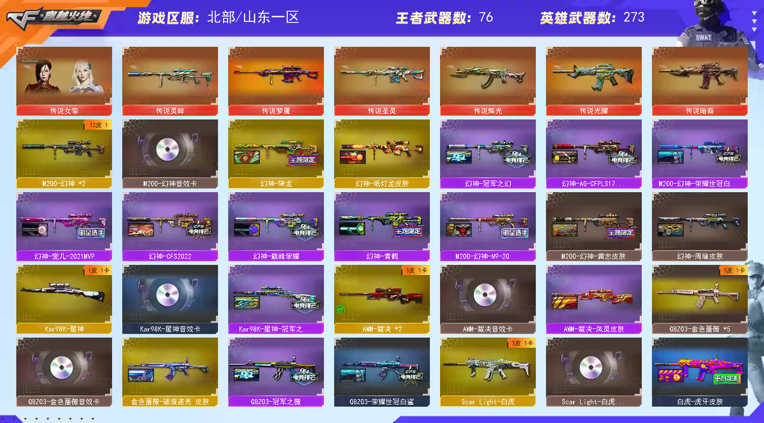 天花板7传说💕女帝冠军星神卡12皮幻神卡百城裁决卡珍藏雷神宠儿N9全冠军全虎牙斗鱼皮全音效冠刃炽芒;USP-雷暴,荣耀世冠-柯尔特,柯尔特-冠军之特,炽芒蝶刃,Knife-冠军之刃,沙漠玫瑰,传说女帝,