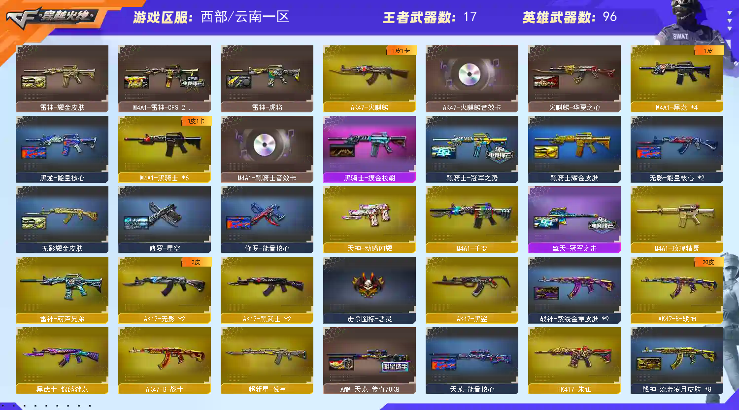 西部⭐【6黑骑士+黑骑士音效卡+冠军之势皮肤】【6烈龙+5盘龙+2炼狱+斯泰尔蝴蝶+斯泰尔死亡之眼】