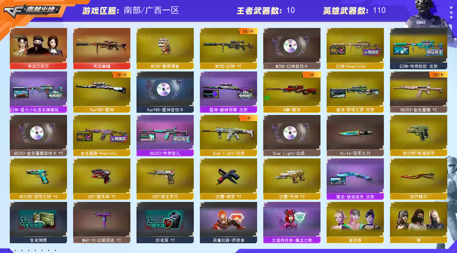 • 游戏区服:穿越火线 / 南部 / 广西一区